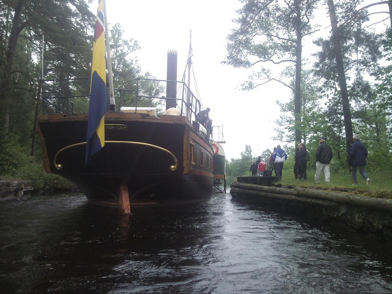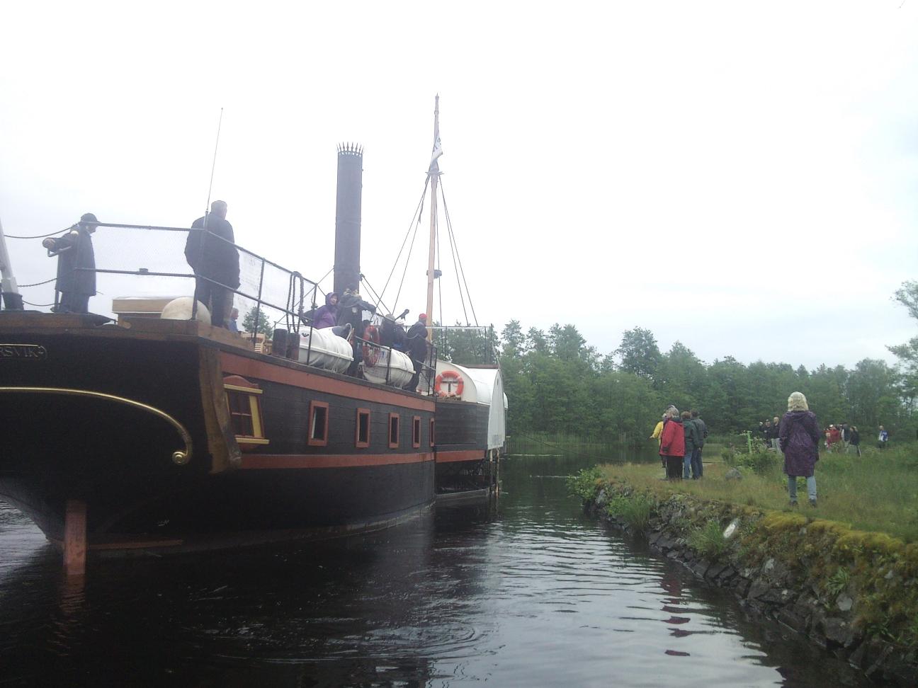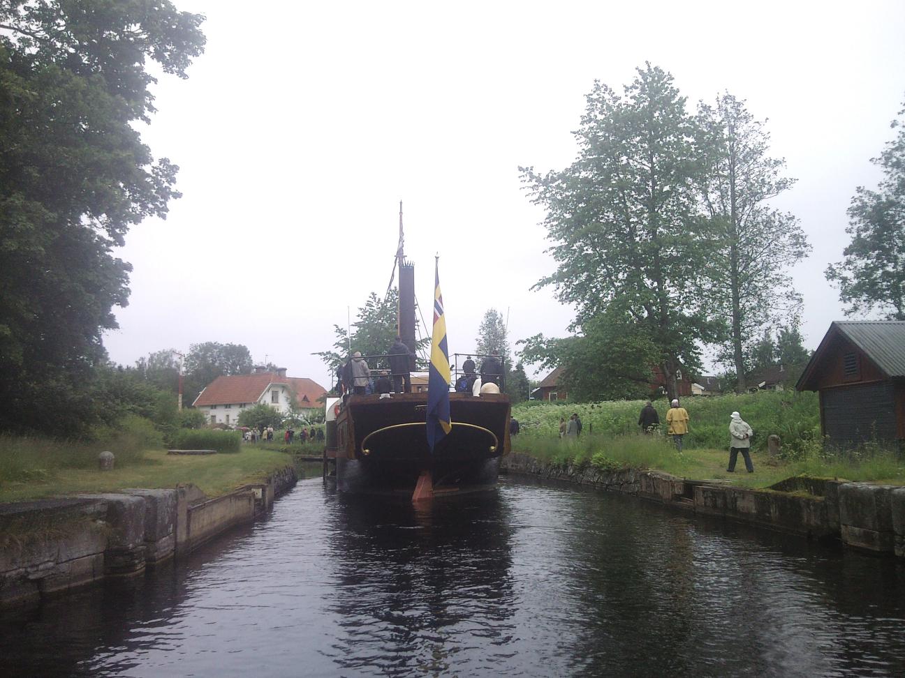 Jag mötte upp nordevall i spetsnäskanalen strax innan Forsvik i min jolle med kameran. resan från Sjötorp var det ombytta roller då Patrik stod utkik på bryggan och Peter (fd ägare till Ceres kanalbåt) stod vid rodret. någon "kapten" som på ner resan tog det lite väl försiktigt utan styrfart och hjälp av stöttor o tampar såg jag inte till?