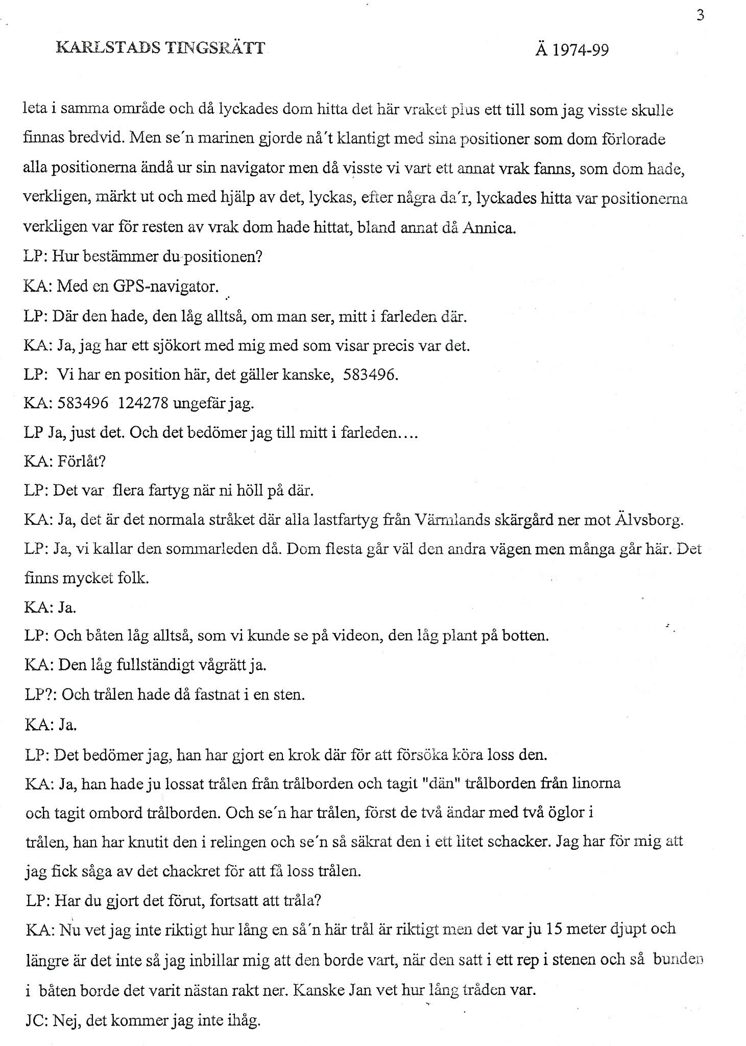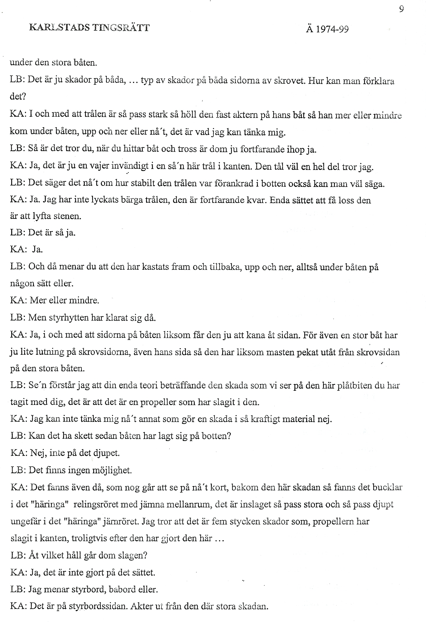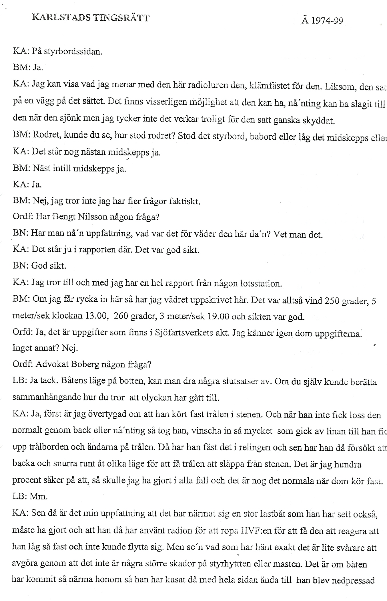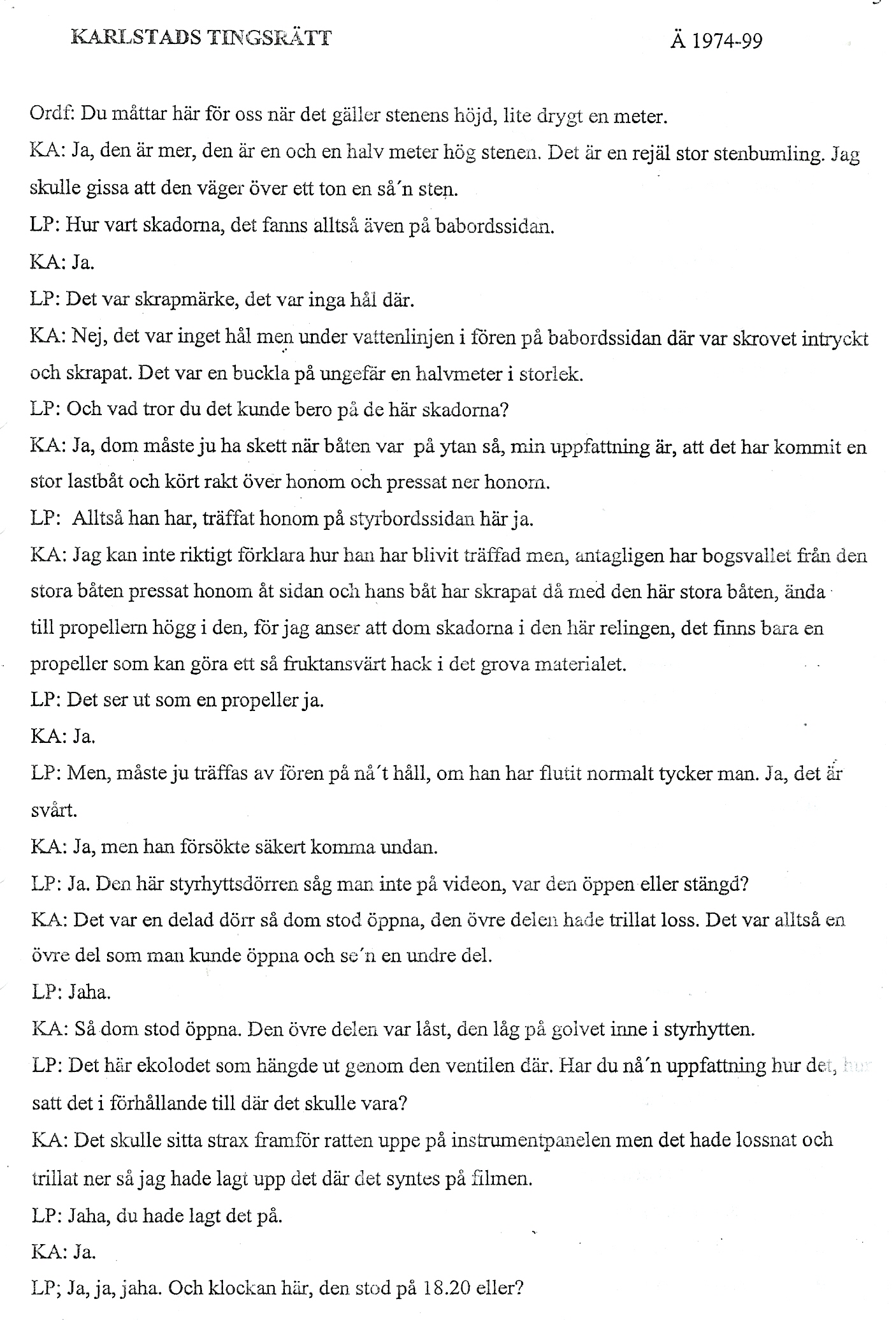 Nedan följer Sjöförklaringen som hölls på de anhörigas begäran efter att jag bärgat båten ,tydligen gjorde man en utskrift efter en bandupptagning ! därav blev det något osamanhängande !