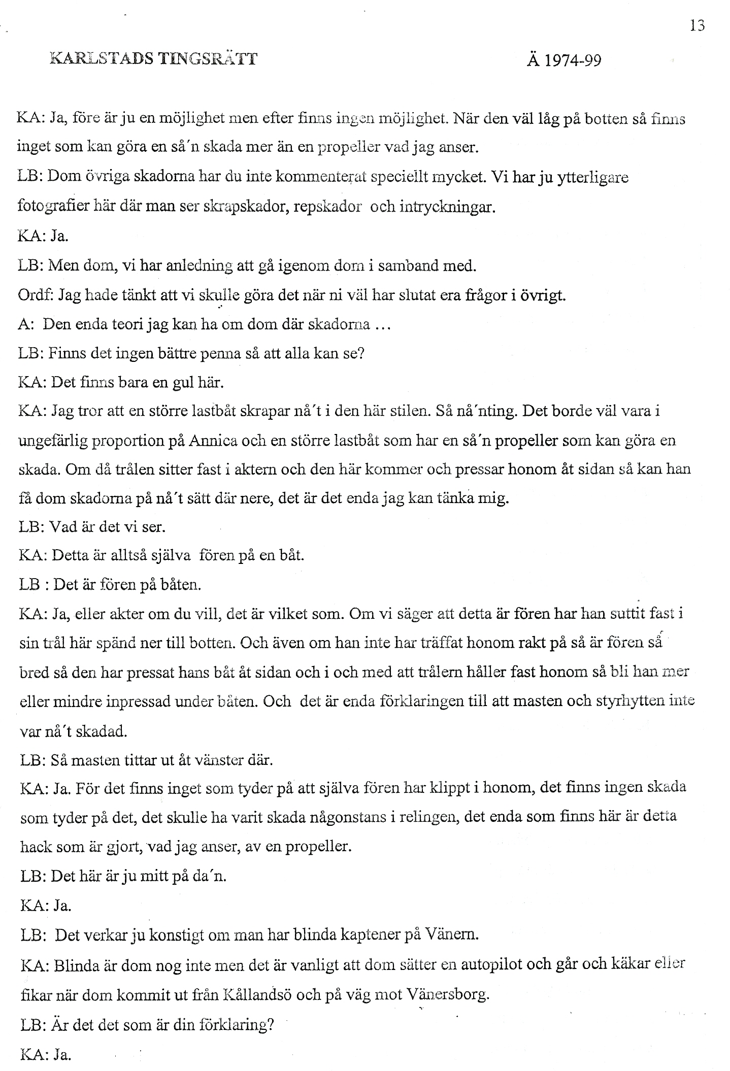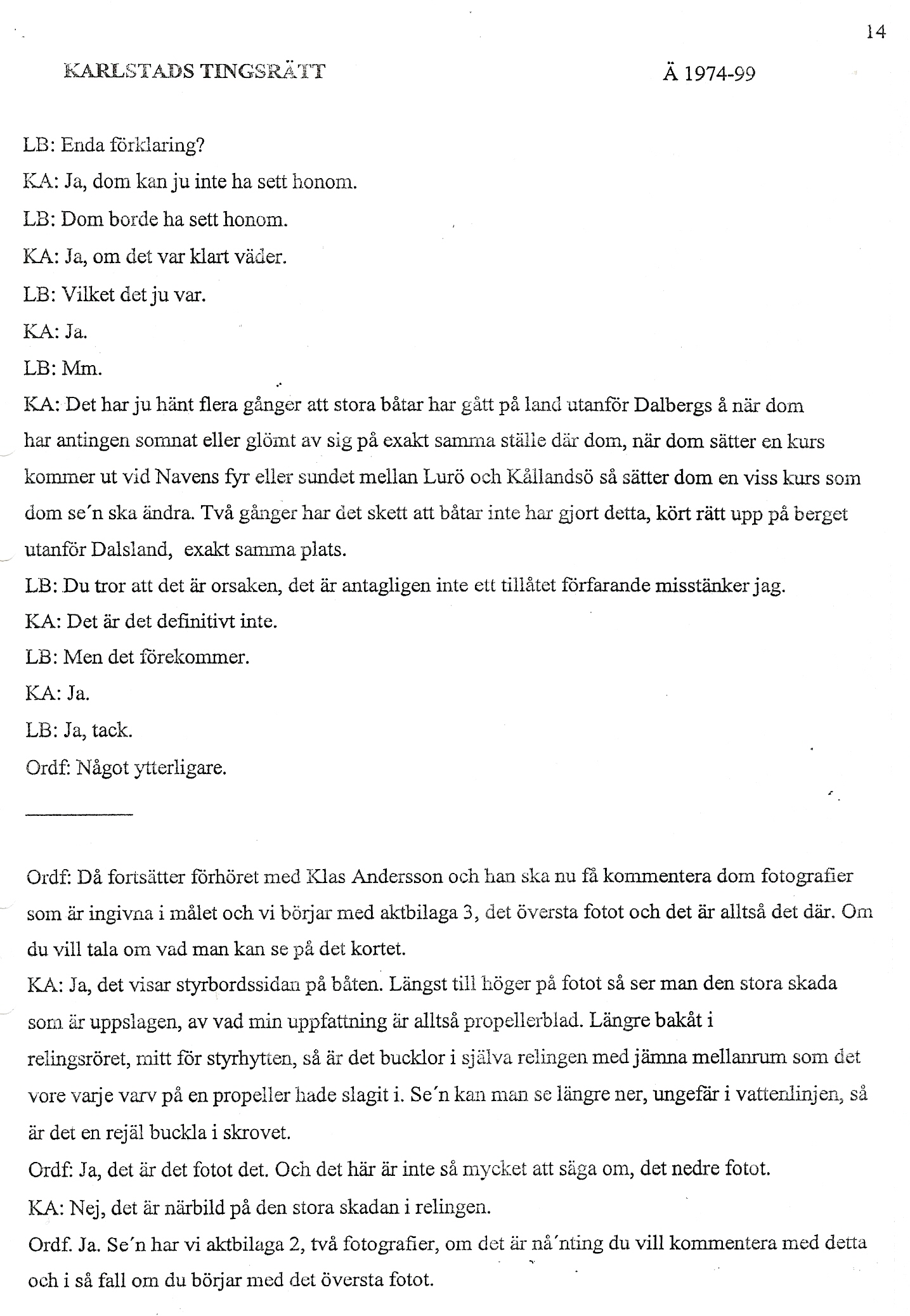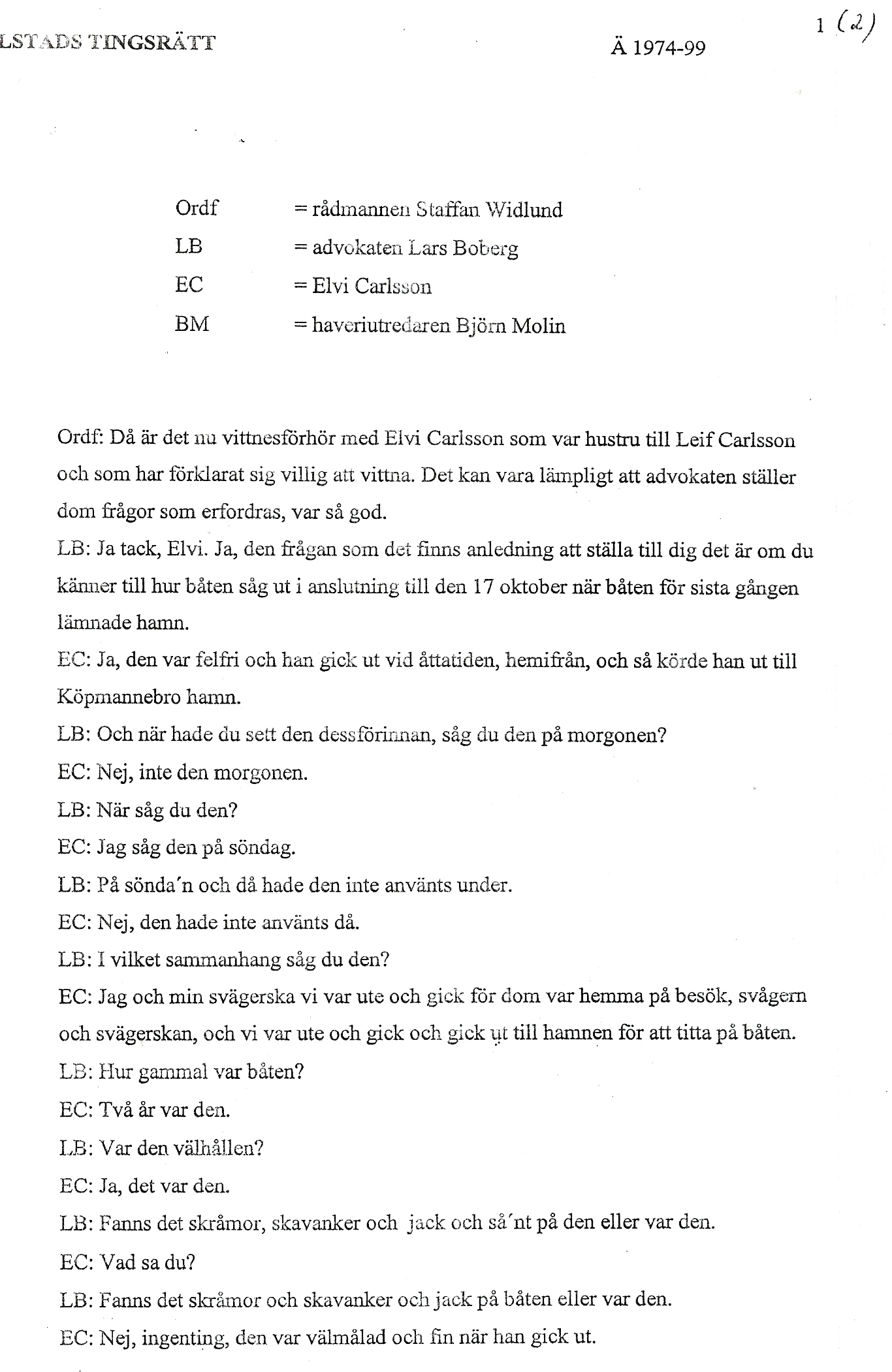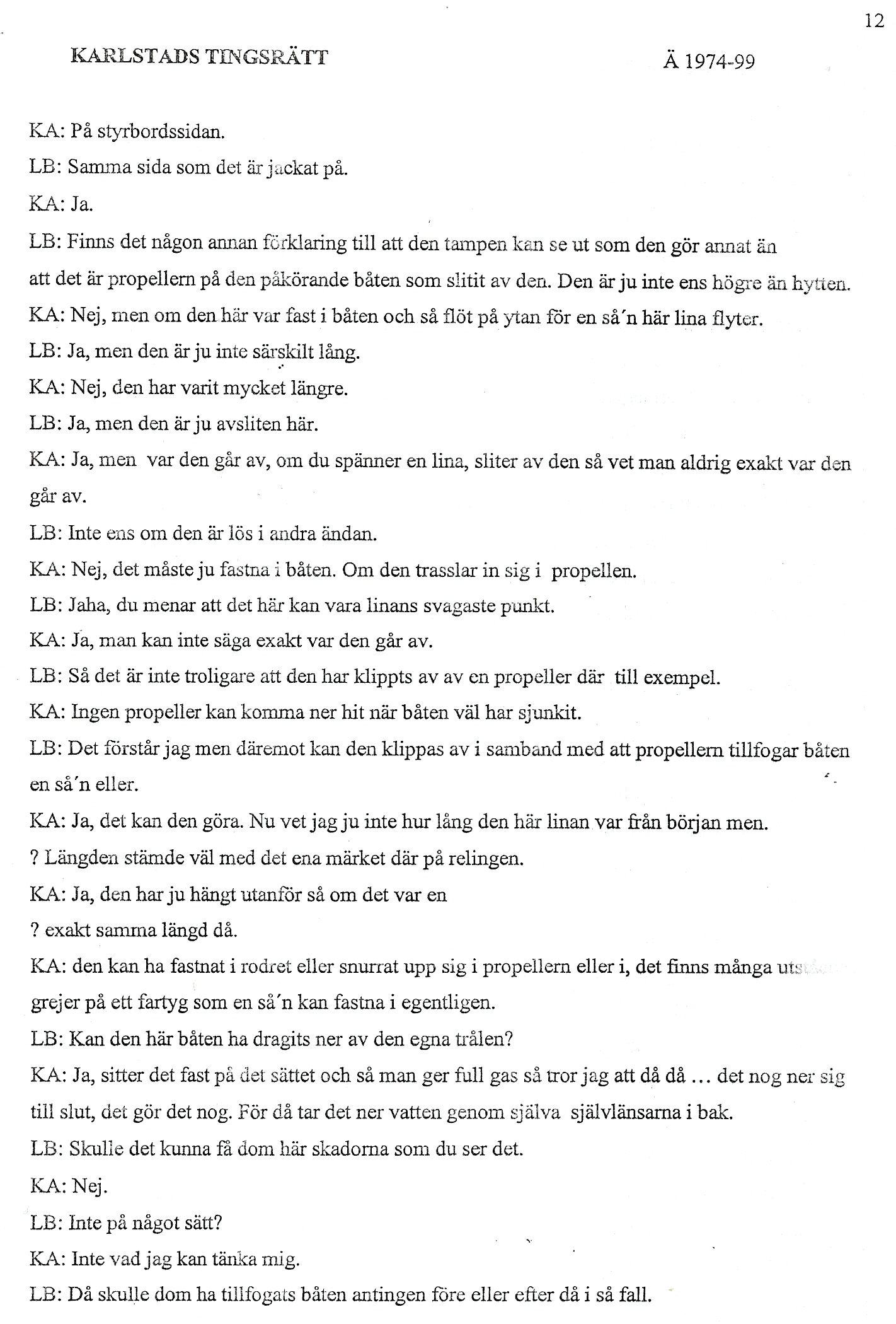 Nedan följer Sjöförklaringen som hölls på de anhörigas begäran efter att jag bärgat båten ,tydligen gjorde man en utskrift efter en bandupptagning ! därav blev det något osamanhängande !