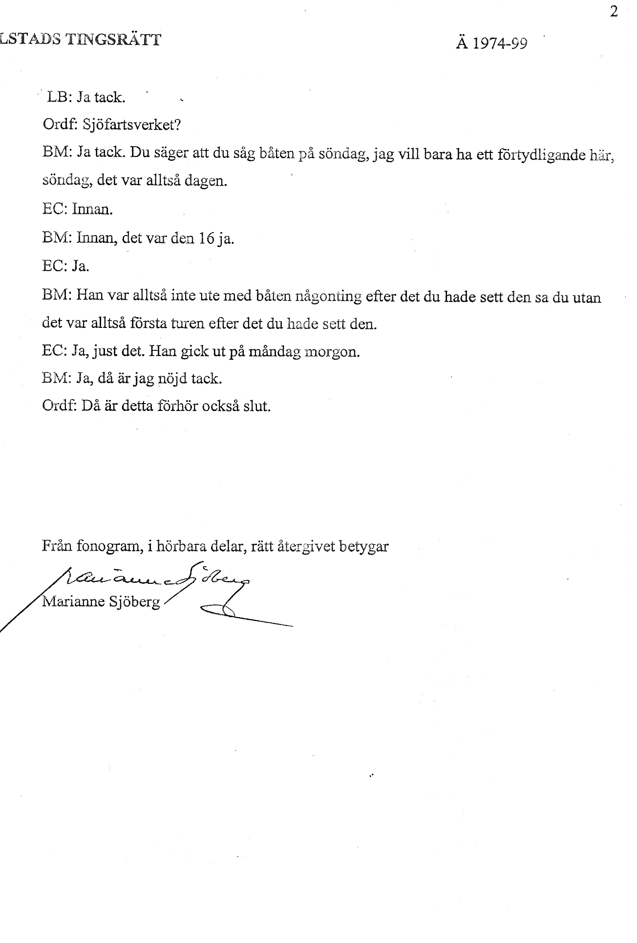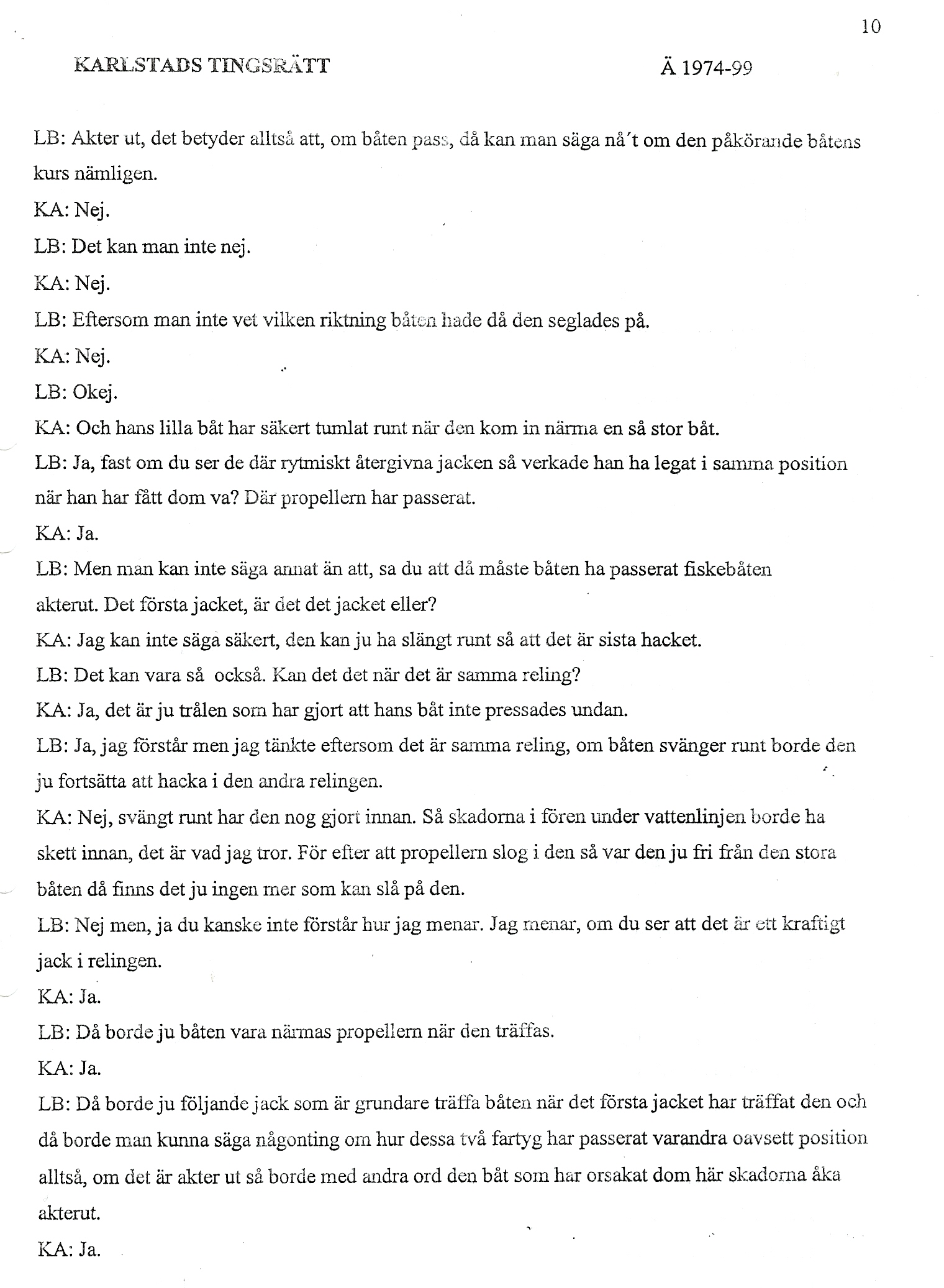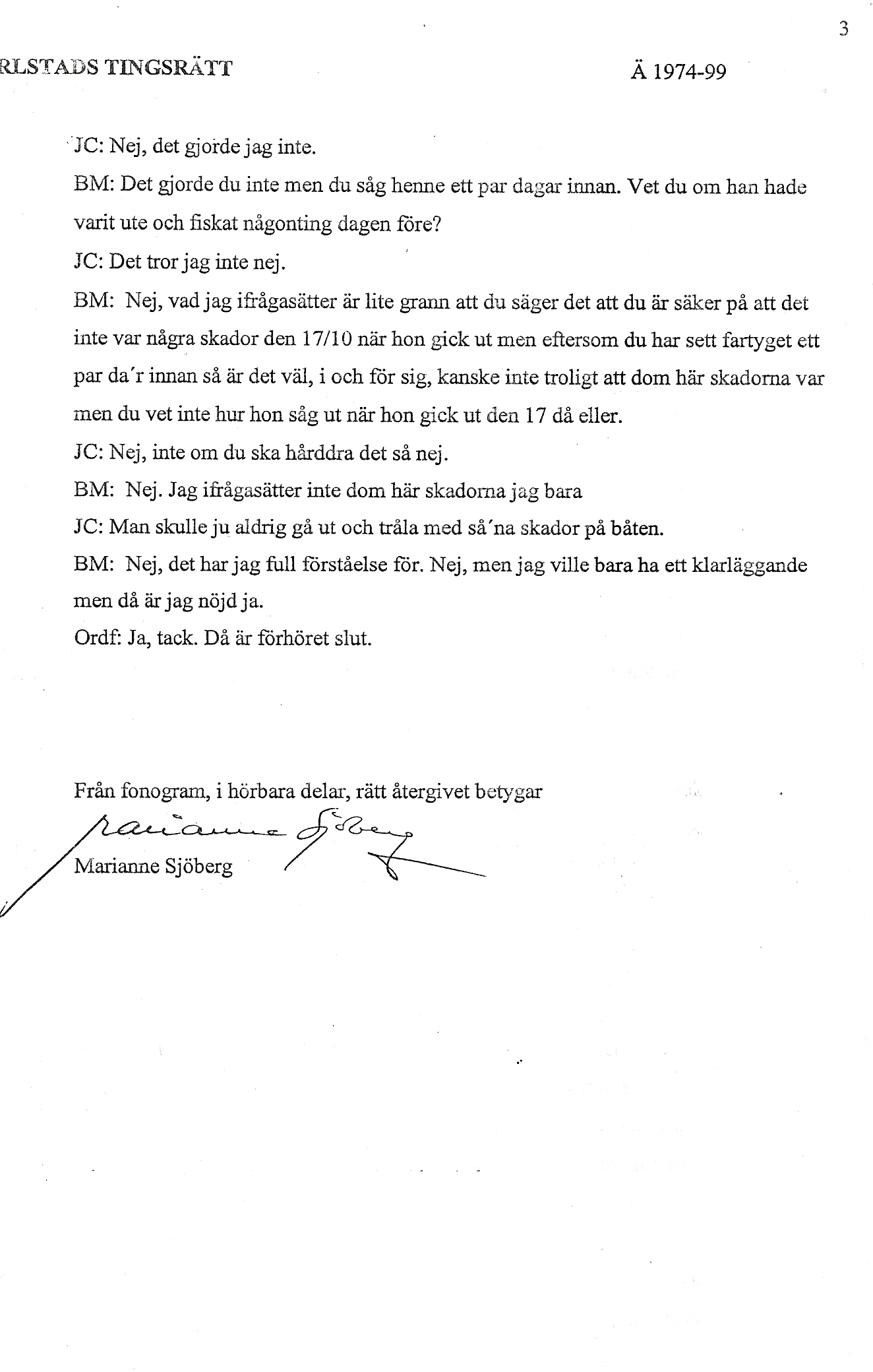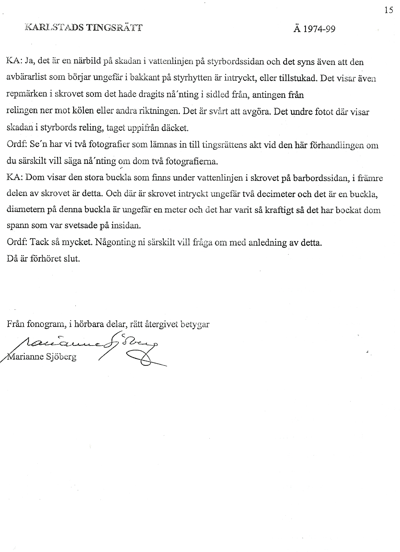 Nedan följer Sjöförklaringen som hölls på de anhörigas begäran efter att jag bärgat båten ,tydligen gjorde man en utskrift efter en bandupptagning ! därav blev det något osamanhängande !