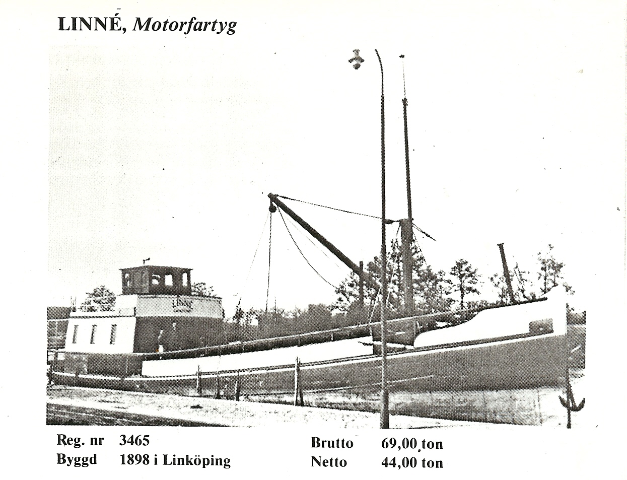 Det kan vara motorfartyget Linné, regnr 3465, 69 brt, byggd 1898 Linköping, pr Ragnar Andersson, (Karlstad), Alsters station, som hade lastat vete i Hjo och var på väg västerut, när fartyget den 20 november 1940 grundstötte på revet Flisen och blev vrak Den är med i Harry Karlssons bok Vätterbåtar med kort historik och foto.