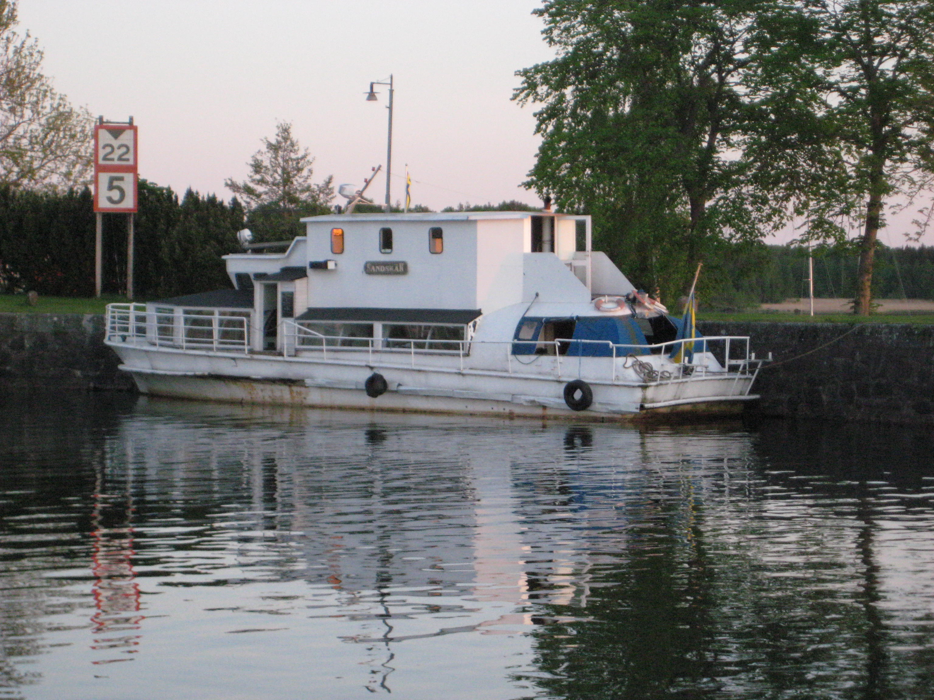 När vi kom in till Sjötorp igår så låg den kvar men nu i bassängen uppanför sjöslussen ,