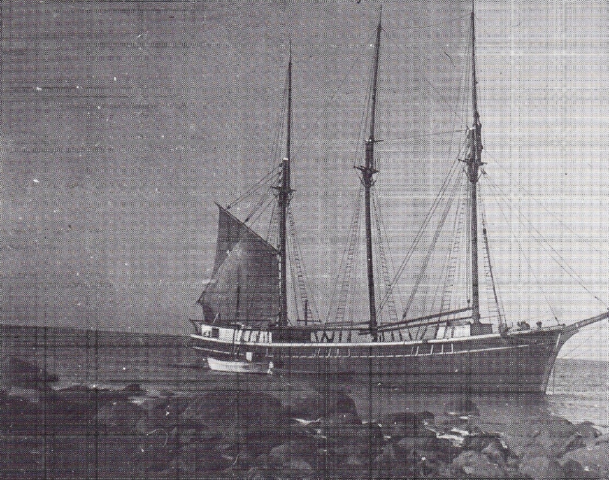 Nu har jag kommit på det - fotot visar BEATRICE, regnr 4308, byggd 1904 på Högmarsö av ek och fur, 170 brt 126 nrt. Byggd för ett lokalt partrederi; fartygets hemort: Länna. 1929 såld till pr H Andersson, Bleket. Motor insatt. Den 24 januari 1935 kl 23.45 strandade den vid Södra Näs söder om Varberg och slogs så småningom sönder.