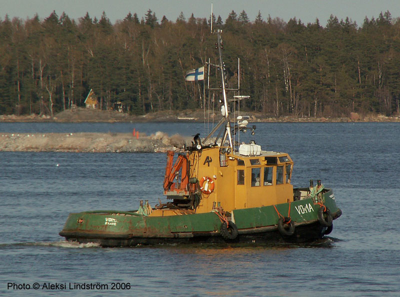 Byggdes för AB Nystads Varv, Nystad. Köptes 1968 av Oy Suomen Hinaus AB, Naantali och fick det lustiga namnet ISAKSSON, vilket ändrades till VOIMA då Rederi AB Kraft, Kalmar köpte 1994 för 300 000 FMk. Såldes tillbaka till Finland 1999 då Hevi Oy, Pattijoki betalade 825.000 kr för henne och behöll namnet. Köptes 2001 av Arctic Towing Oy, Brahestad. Kantrade och sjönk i Kaskinens hamn den 21 nov. 2001 under ass av det ryska lastfartyget PIONER KAREL II. Bärgades i början av dec. 2001 och fick senare namnet AHTI.