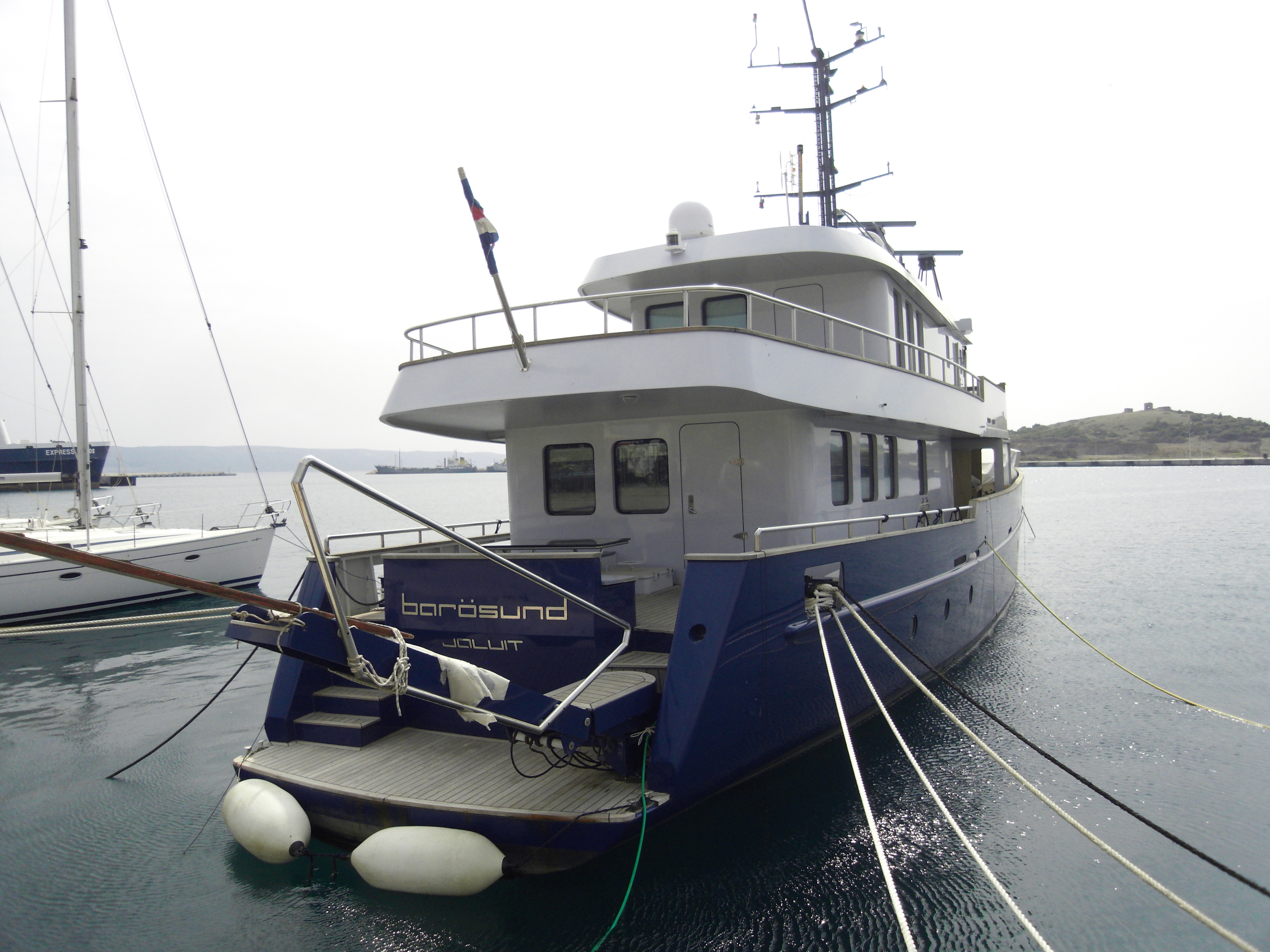 Barösund som såldes av FMV 2005 hamnade hos en familj i Athen, Grekland. De har nu slutfört sitt arbete med att bygga om henne till yacht. Här ser vi ett par före-efter bilder.