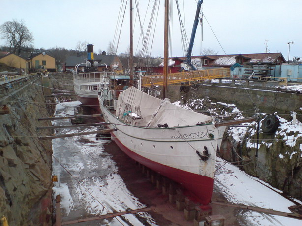 Det är ju länge sedan jag var inne på forumet. Jag tänkte bidra med bild från mitt senaste dockbesök. Lauro Mullers dry-dock i Manaus. Manaus är sista utposten i Amazonasfloden. Här finns massor av slipar och småvarv och man bygger pråmar, båtar och fartyg i både aluminium, stål och trä. Bygget av träfartyg börjar minska på grund av, hör och häpna, bristen på virke. Det mesta av skogen här är delar av reservat och skyddad. Därför bygger man bara av flytvirke och stormfälld skog. Återkommer med lite mer bilder härifrån floden.