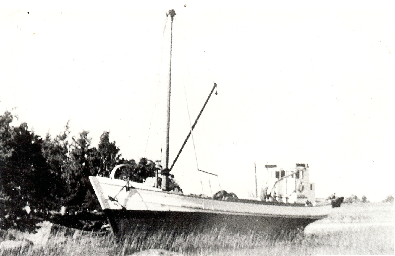 Gomöran, på bilden av Lilly 1947 så ligger det något som ser ut som en jaktriggad slup akter om Lilly.. Kan det vara Bruce från pirum?