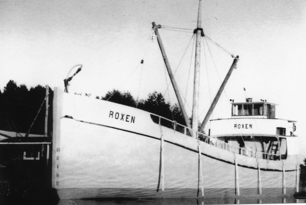 Jag tror det är AGE 1 som man försökte få omdöpt till just ROXEN i samband med motoriseringen. Namnet godkändes dock inte varför man tvingades byta tillbaka till AGE 1 igen innan hon togs i trafik som lastmotorfartyg. Fotot bör då vara taget vid Hjulsbrovarvet.