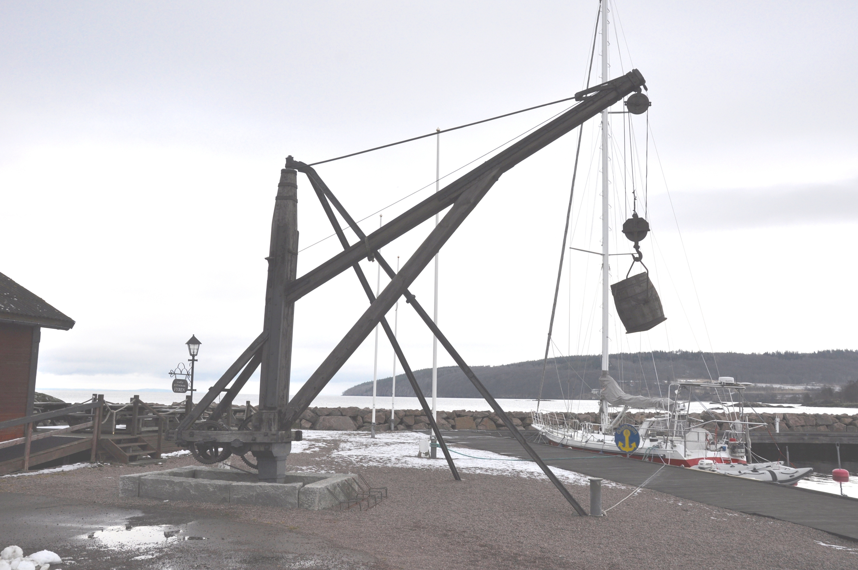 jag besökte Hästholmen den torra vägen.. och fann till min förtjusning att kajkranen i trä fortfarande finns kvar, om än i risigt skick. mig veterligen så finns det inte många träkranar kvar i landet. om någon vet någon mer så låt mig veta var.