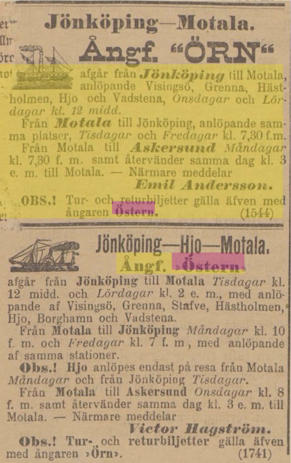 Men ÖSTERN, som trafikerade enbart Vättern, från söder till norr, från Jönköping till Askersund?