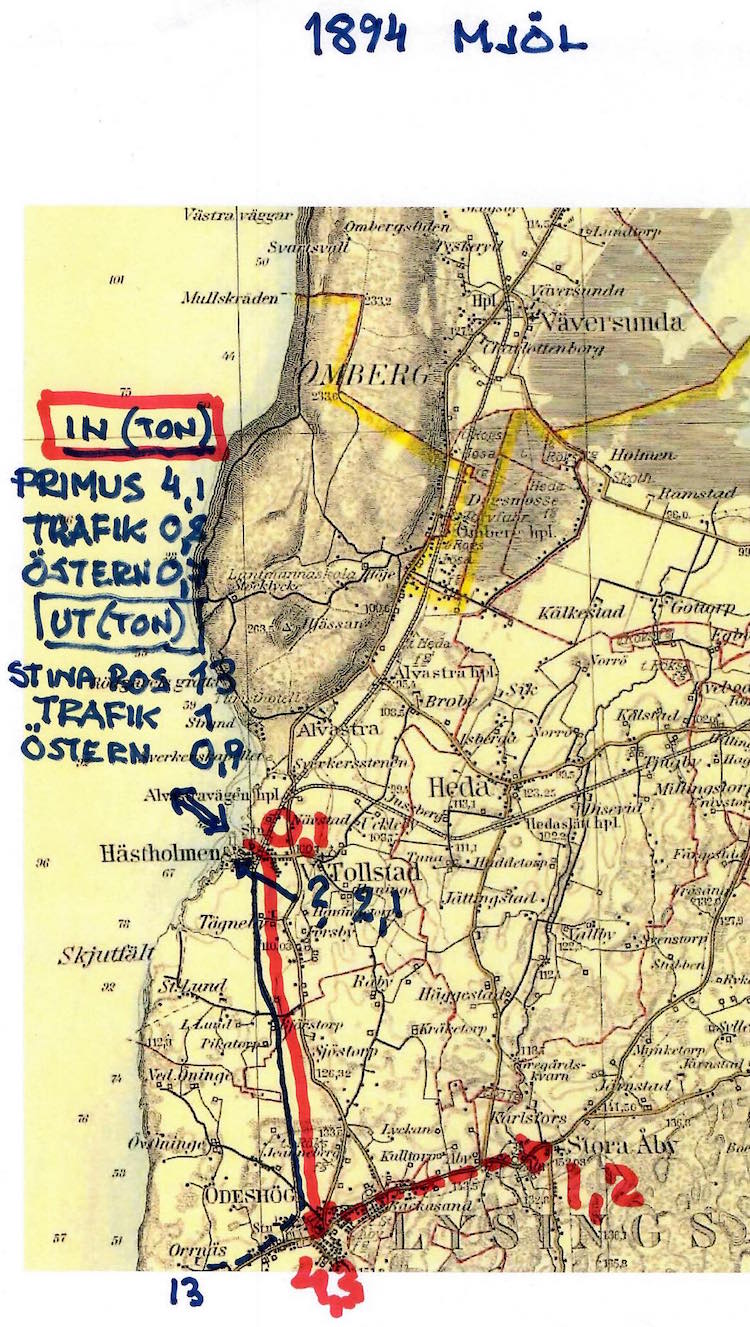 F n håller jag på att göra kartor som visar transportvägarna. Så mycket verkar helt klart att sjöfarten var inte på långa vägar så beroende av järnvägen som tvärtom ...
