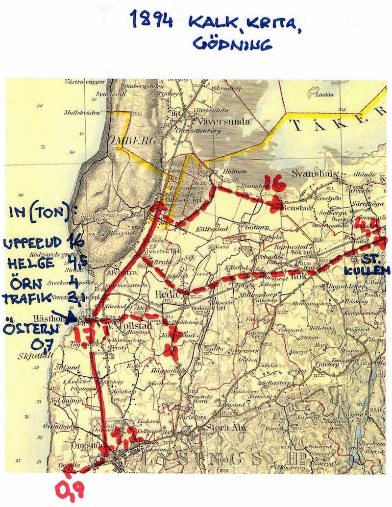 Renstad gård tycks vara den stora importören i trakten men gödning transporterades på dåliga landsvägar ändå bort till Stora Kullens gård.