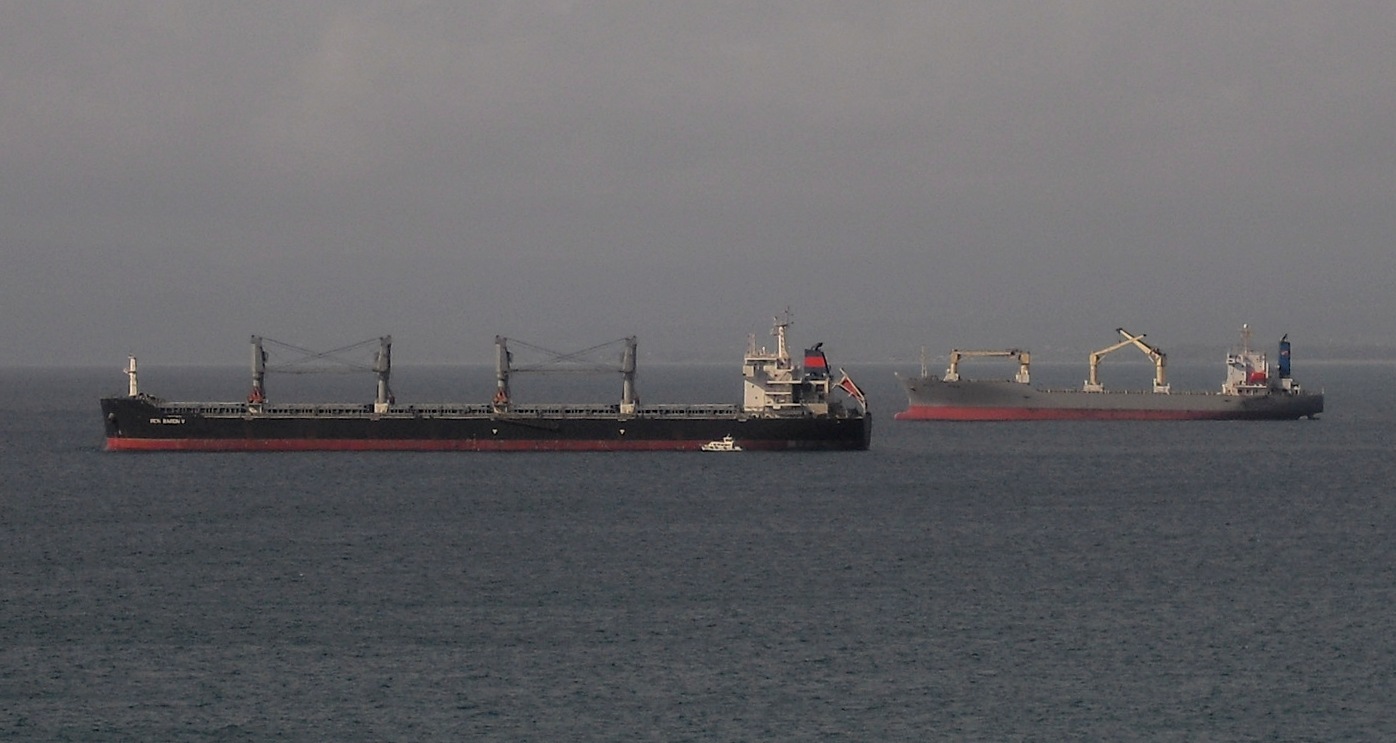 Stäven på en av smuggelbåtarna som ligger kvar syns tv om Tzoanna V. Den andra fick bogserhjälp till Pireusområdet för några veckor sedan, troligen upphuggning.