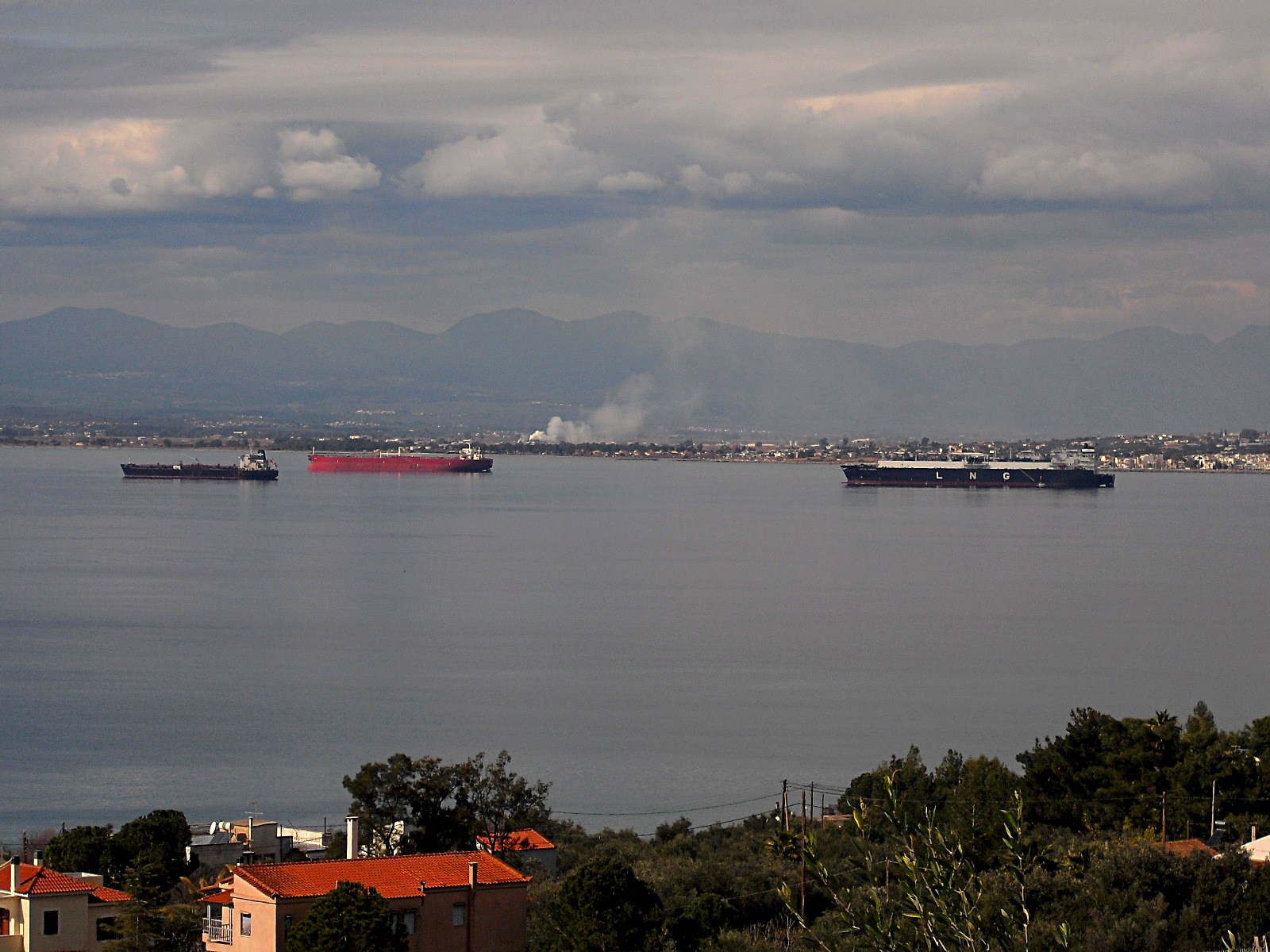 Endast oljetankern ligger kvar ikväll. Ibland har dom väldigt bråttom. Tid är pengar och de fick snabbt vad de kom hit för. 17 grader i luften idag. Jag klippte olivträd.