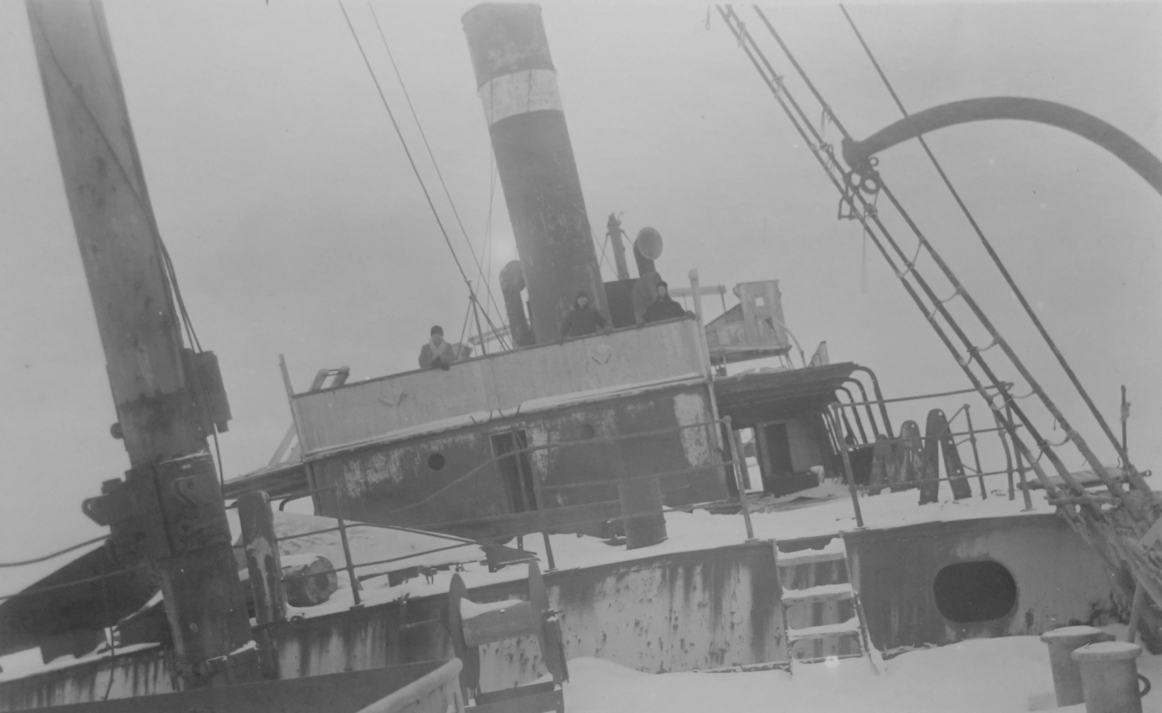 Foto från ca 1920-tal över däcket på ett okänt ångfartyg.
