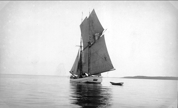 Jag har fått veta, att galeasen är SALUS, regnr 502, byggd 1889 i Lillesand, Norge, 50 brt, såld 1893 till partrederi i Mörrum, 1894 till Gullholmen, 1899 till Fiskebäckskil, 1907 till Gåsö, 1912 till Fiskebäckskil igen, 1924 rapporterad upphuggen där.