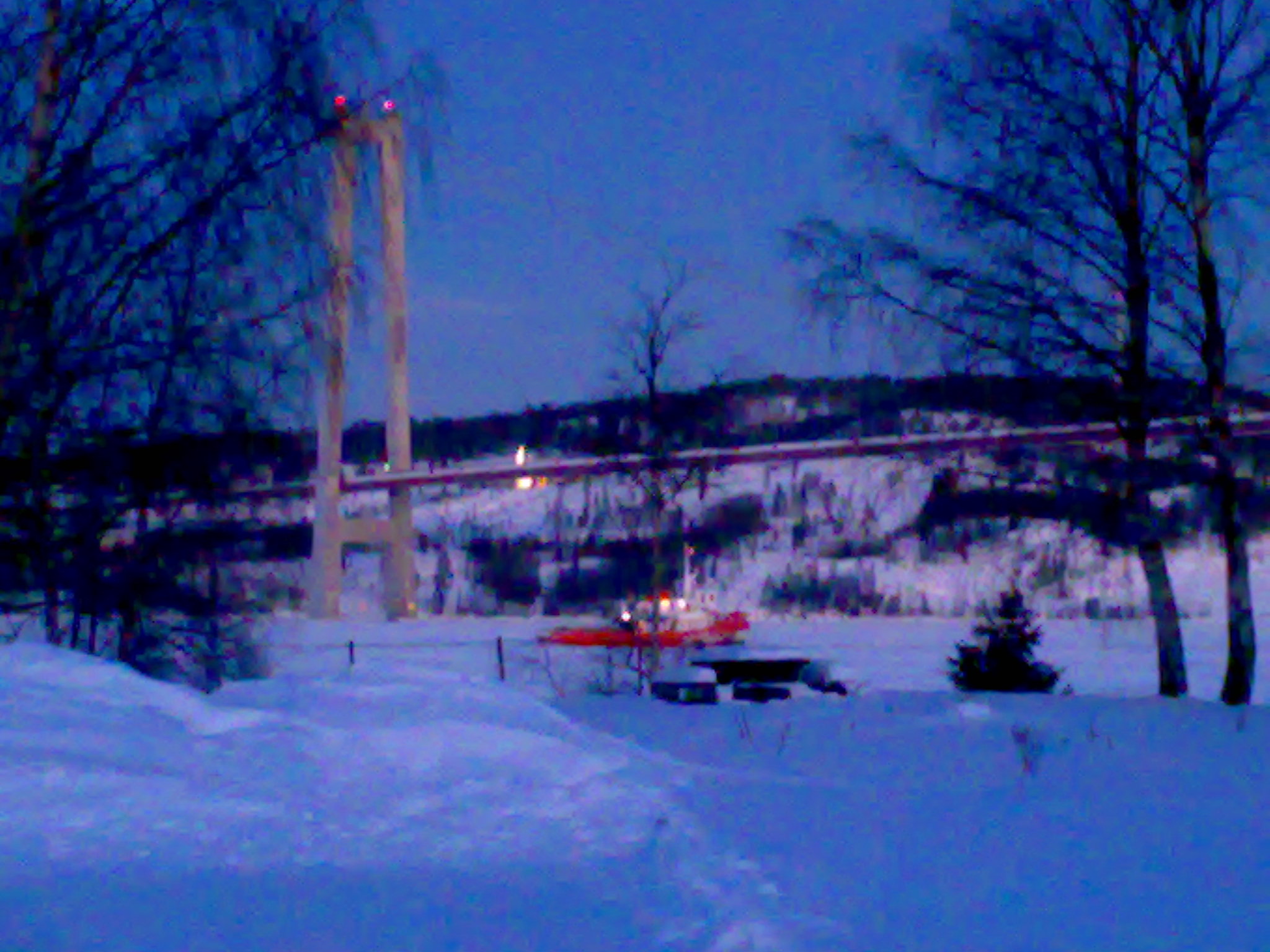 Jag kan väl komplettera vad Jonny skrev i samband med bilderna. Isens tjocklek sista biten in till kajen i Docksta var 30-40 cm. Pråmen lämnades ute på fjärden och Eol fick klara sista biten själv.