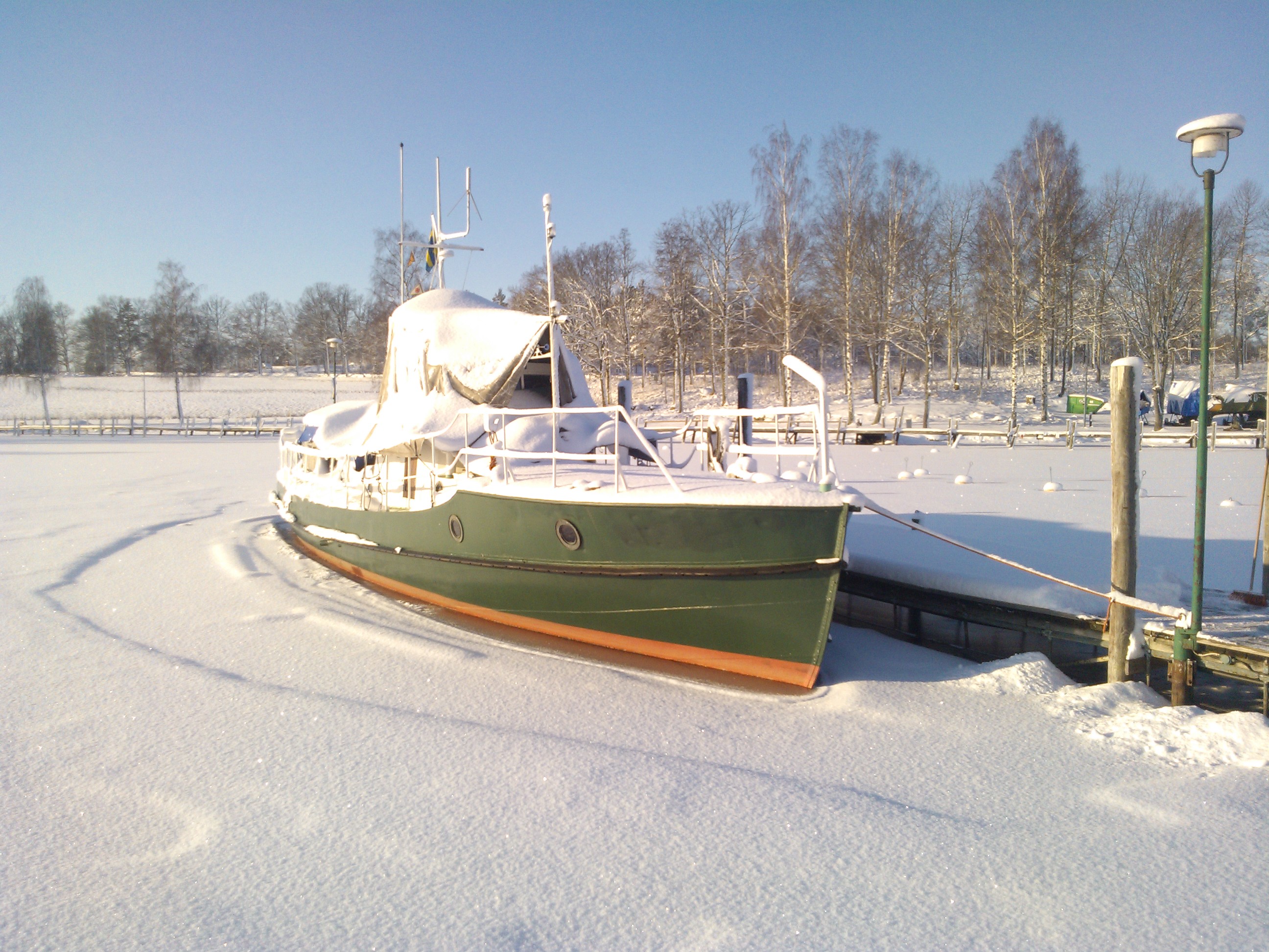 Ja tycker att en båt med munters färger inte passar med polerad mässing o brons utvändigt.. Det blanka finns på insidan i styrhytt o salong. Hade munter varit vitmålad utvändigt hade det passat med blingbling. Då kunde man ju cromat ankarspelet oxo :mrgreen: