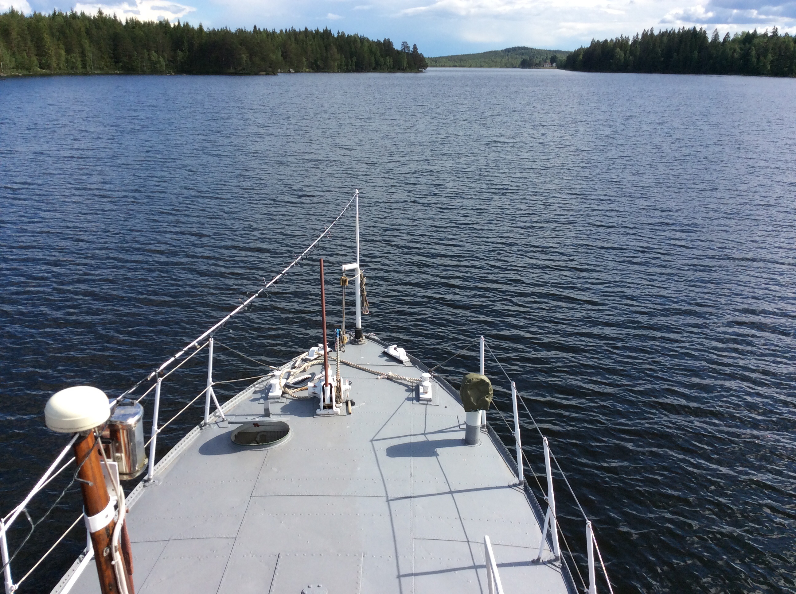 nisseM berättade att det fanns en maskinist nere i i maskinrummet som skötte fram o back med spaken! Kontakt via talröret och visselpipa. Kul att det finns kvar än! Jag antar att w7an med fyra cylindrar var tystare än den nuvarande MD96an som stoppades i 1952 tillverknr 256 tror jag.. En tidig typ A gråmålad. Nu är det rätt jobbigt att vara i maskin under gång.