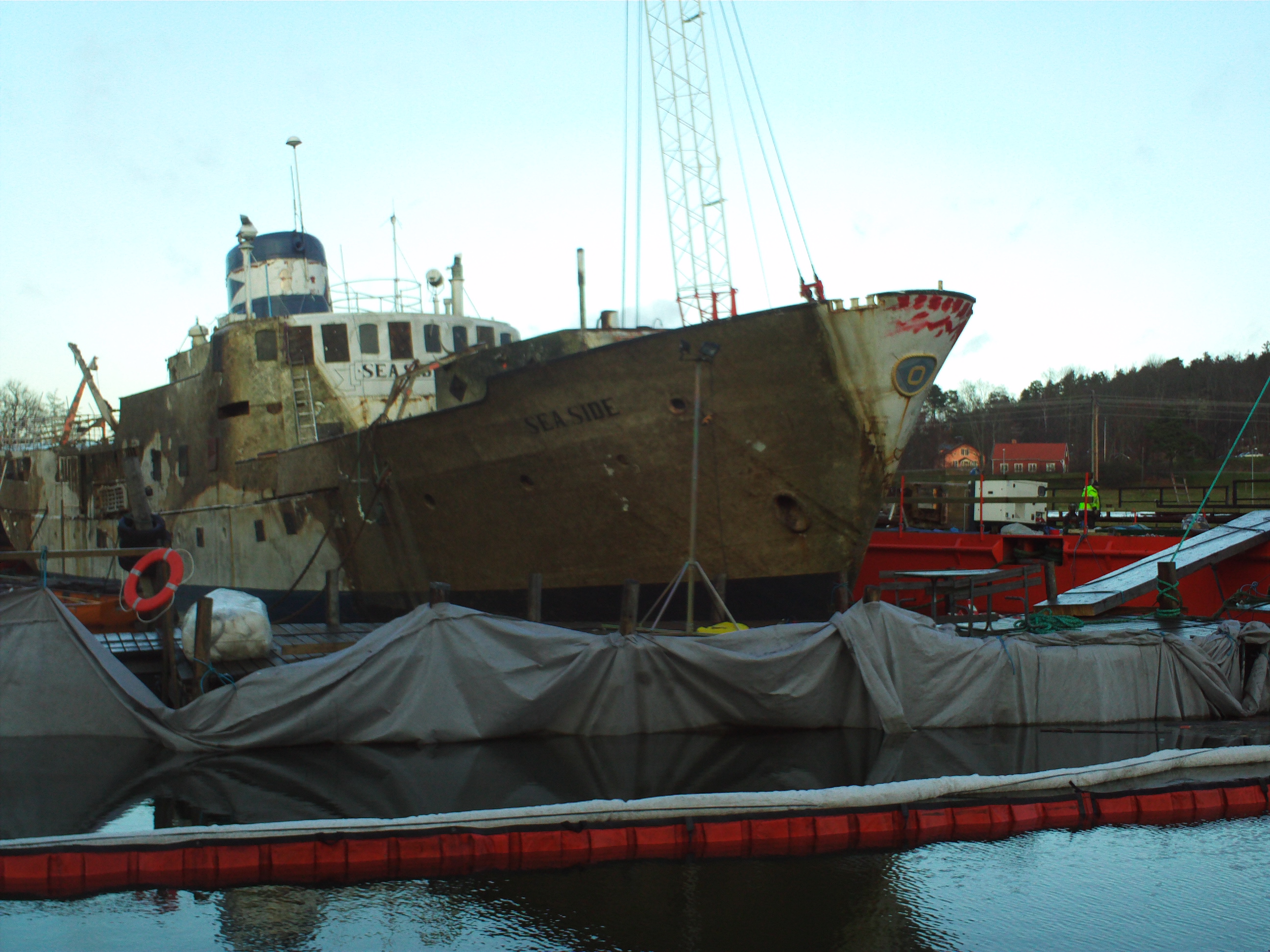 Åkte förbi idag och konstaterade att Pampas Marina ihop med TUGAB var på plats med bogserbåtar, pråmar och kranar.