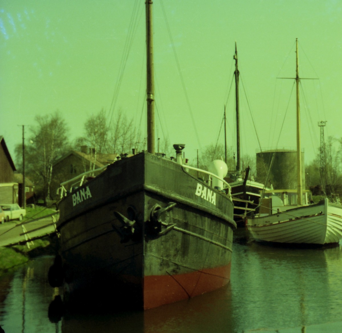 Troligen efter vintern 74/75 tömdes dockan vid Motala verkstad och akter om mina föräldrars skuta låg detta flytetyg. Vem kan berätta mer?