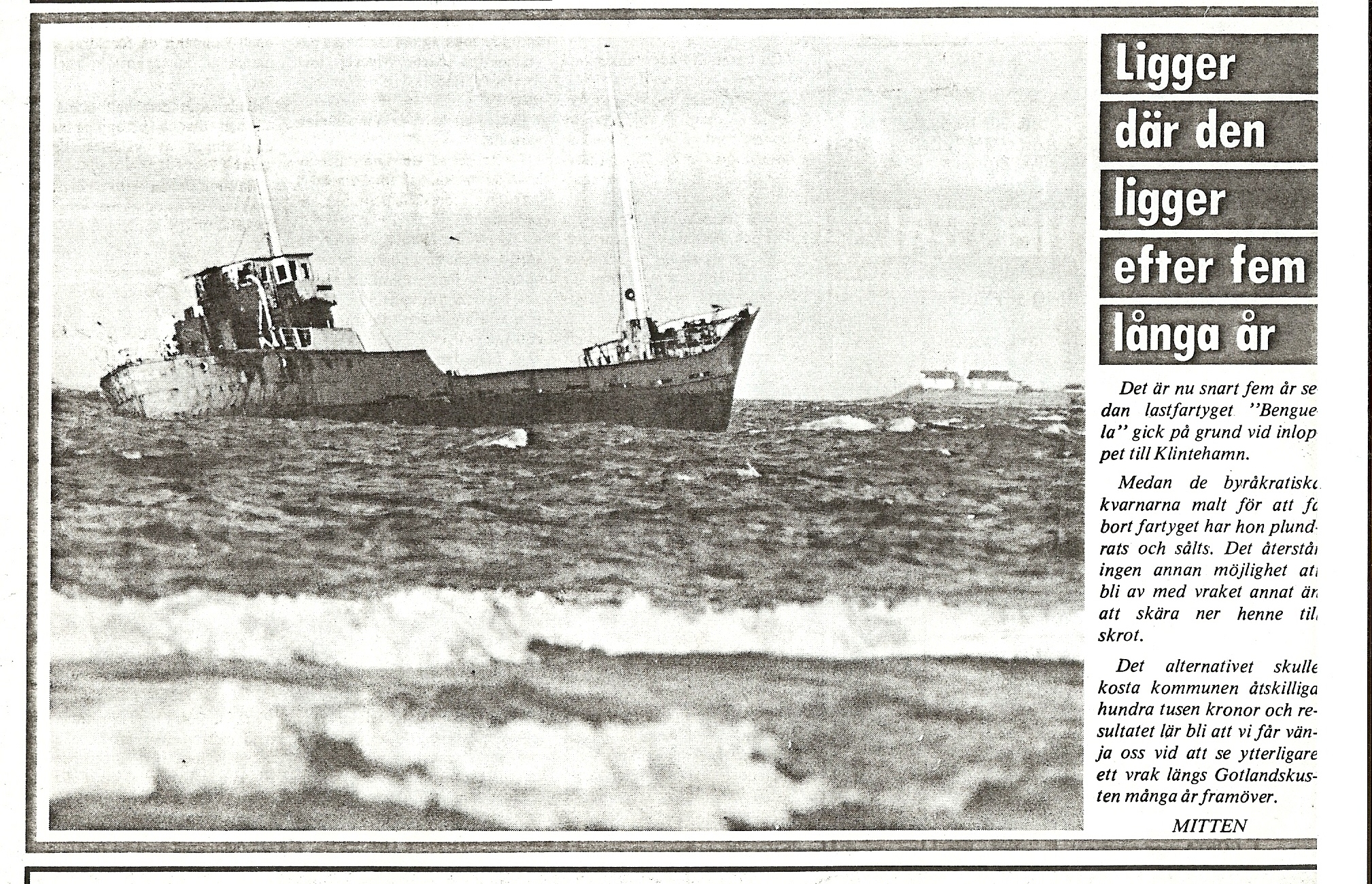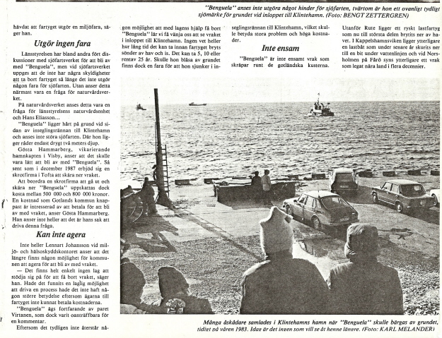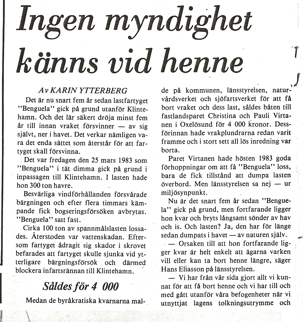 Någon som har bilder på Benguela som gick på grund utanför Klintehamn på Fredagsmorgonen den 25 mars 1983?