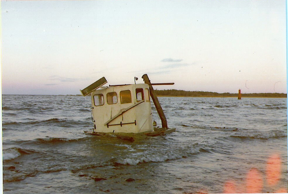 södra Hökön i Lurö skärgård med maskin igång. Fiskarena på Lurö hörde i ett par dygn hur hon låg och slog mot berget innan hon sjönk.