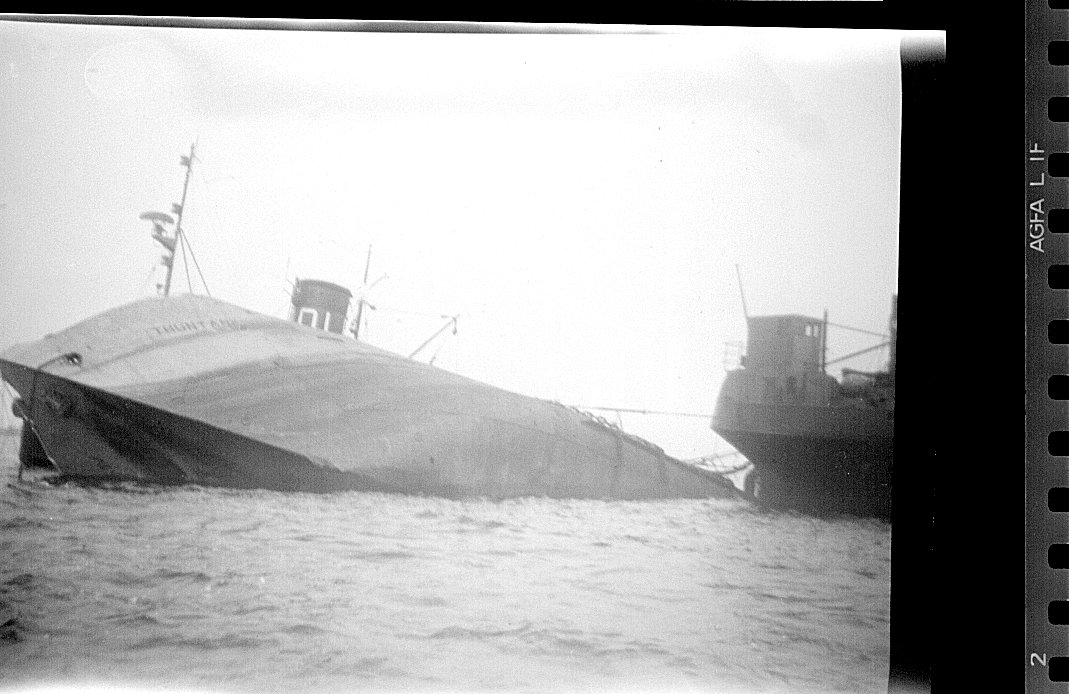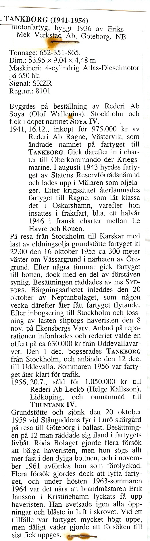 olyckan hände 23/10 1959 strax söder om Stångudden ,hon stog runt efter grundstötningen och bogserades sedan flytande upp och ner till den plats vid Bratten där man sen alltså försökte vända henne rätt !