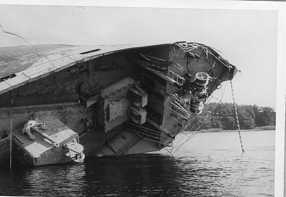 grundstötning-rundslagning ! och blev sedan liggande på exakt samma sätt !! med bara fören över ytan