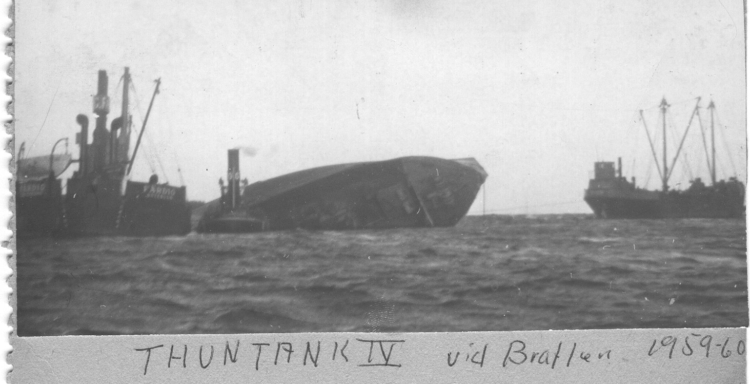 Innan hon flyttades så lyckades en okänd båt kollidera med vraket och gjorde ett stort hål i botten på Thuntank trots att hon låg utanför farleden och på andra sidan om Trädgårdsgrund.