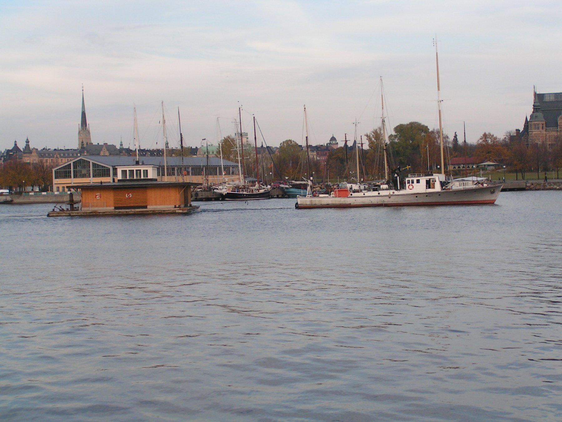 Iaktog idag en något annorlunda bogsering i Nybroviken, Sthlm.