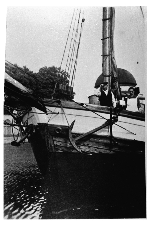 Framåt en liten origgad jakt b 1907. Delar av denna användes av Gunnar Holmberg när denne byggde Maryann som blev klar runt 1970.