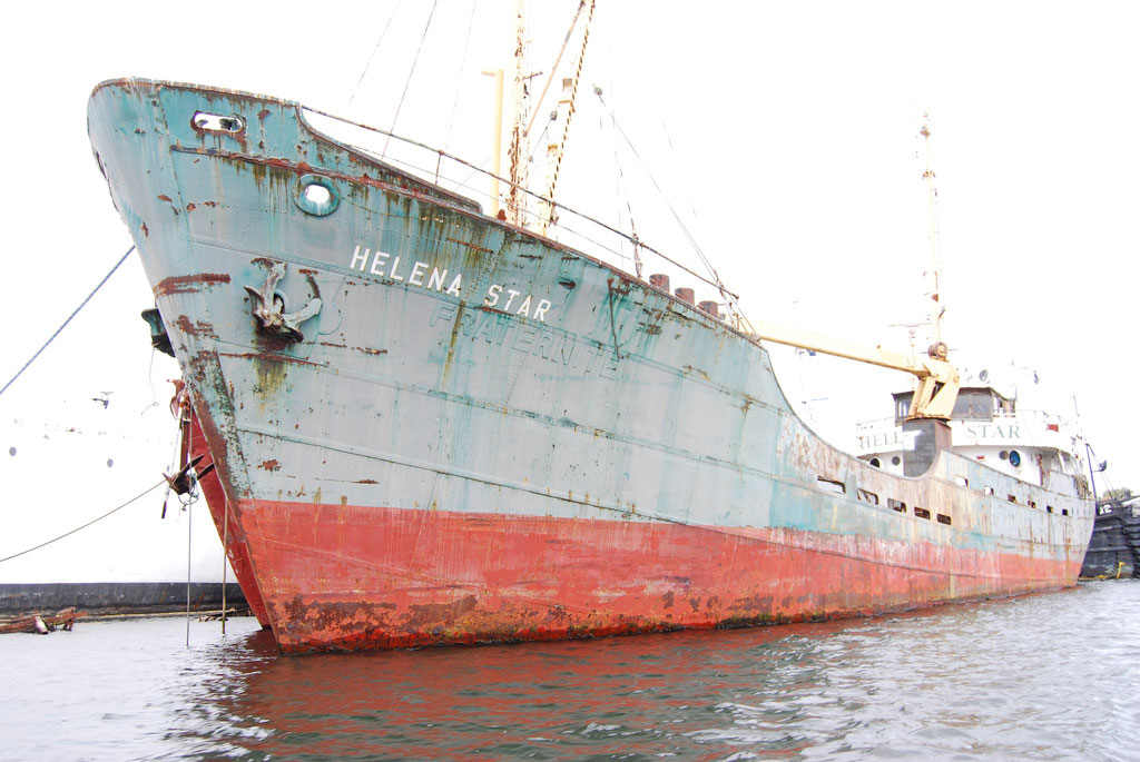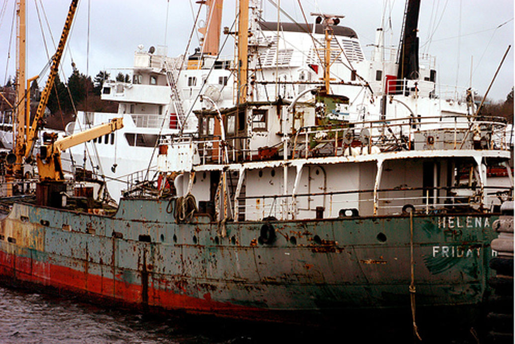 Jag har flera bilder på när hon ligger som ett vrak i hamnen i Seattle.