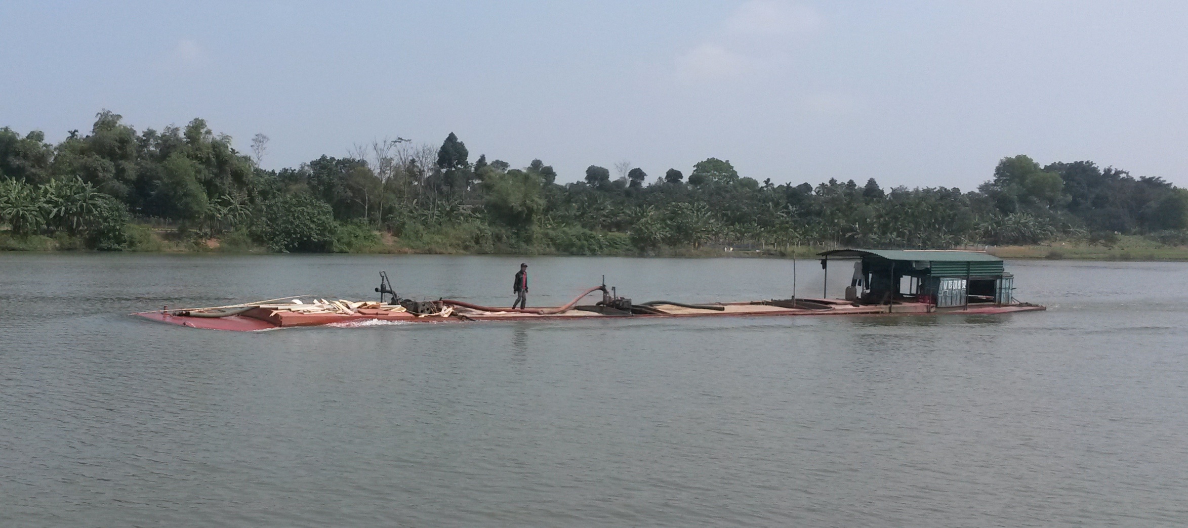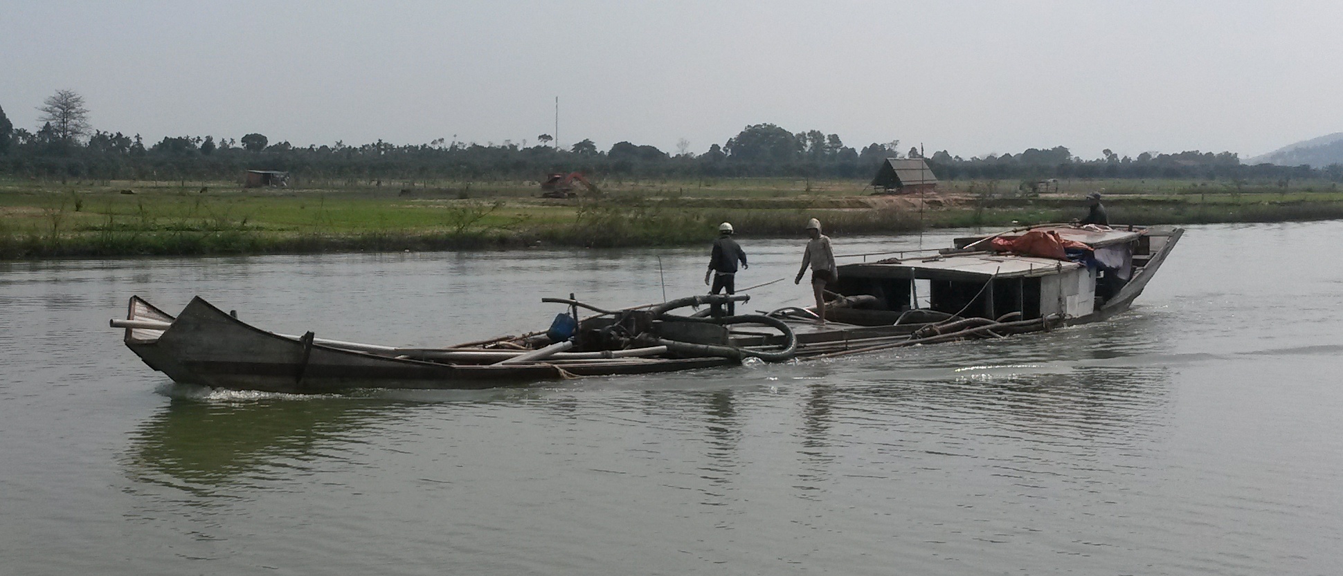 Fartygen transporterar sand som de suger upp från flodbotten.