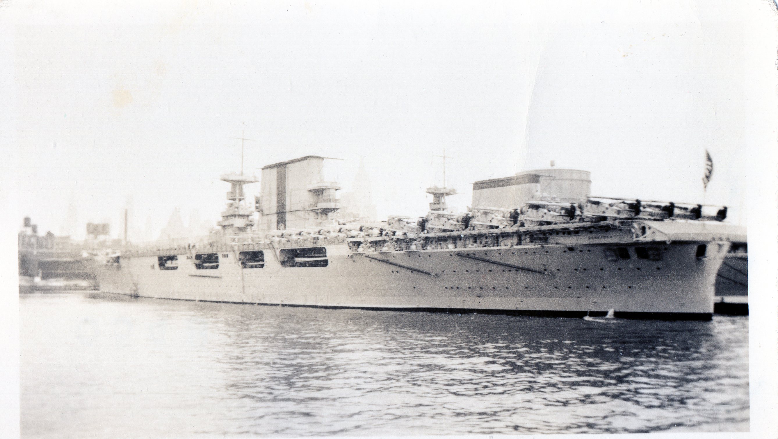 Det skulle kunna stå Saratoga i förstäven. Bokstäverna liknar och det är samma antal men man kan inte säkert läsa namnet. De bilder jag sett på nätet liknar inte helt. Hittar ingen bättre kandidat. Om det är den så blev hon sänkt i ett kärnvapentest den 25 juli 1946.