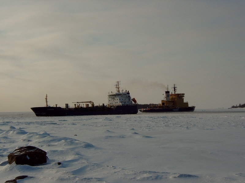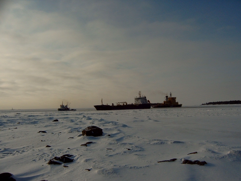 Kronö vred båten rätt i isrännan,sedan gick hon för egen maskin in till