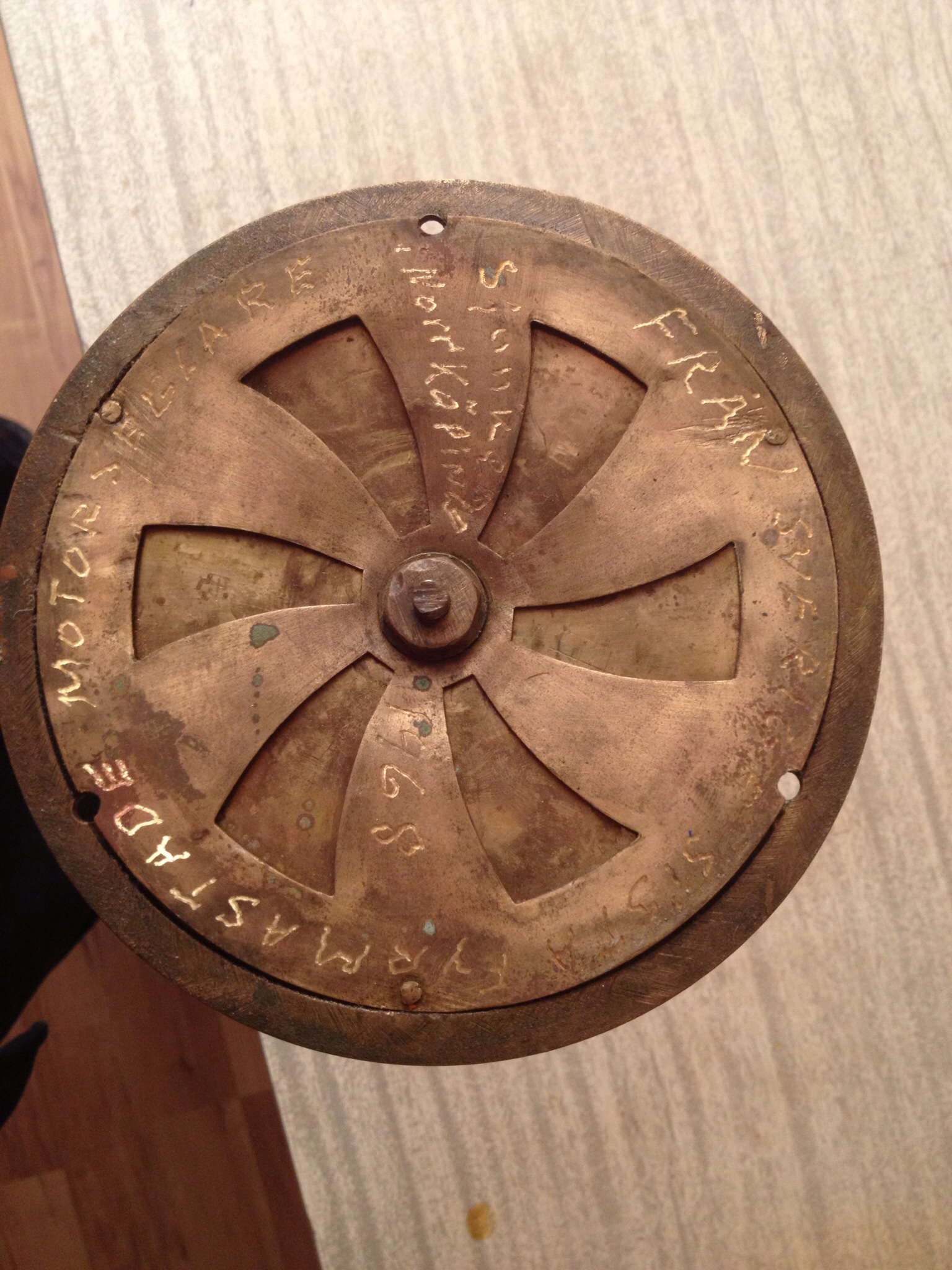 Jag plockade lös den för att lacka dörren, till min förvåning så var följande inristat på baksidan av ventilen
