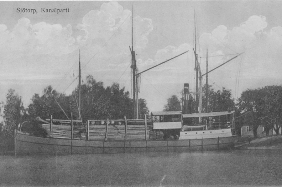 Kanalpesen (den mindre lastångaren) bär starka drag av Sjötorps skrovform och överbyggen.