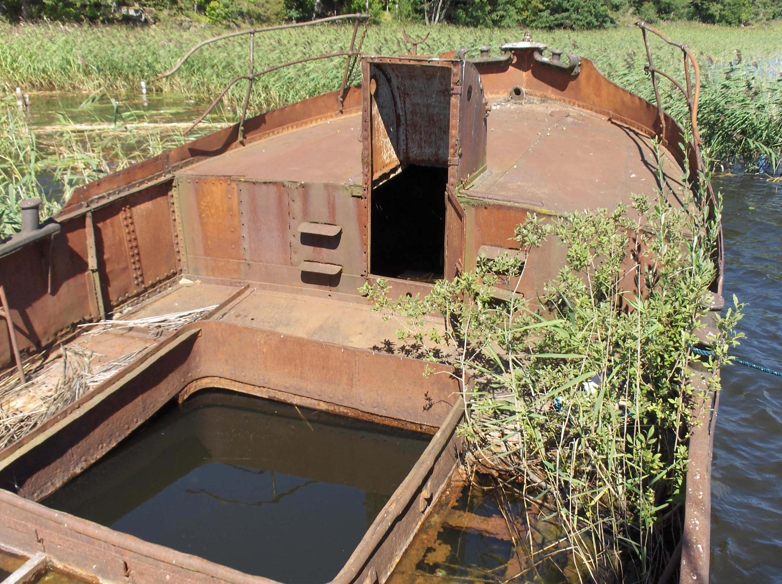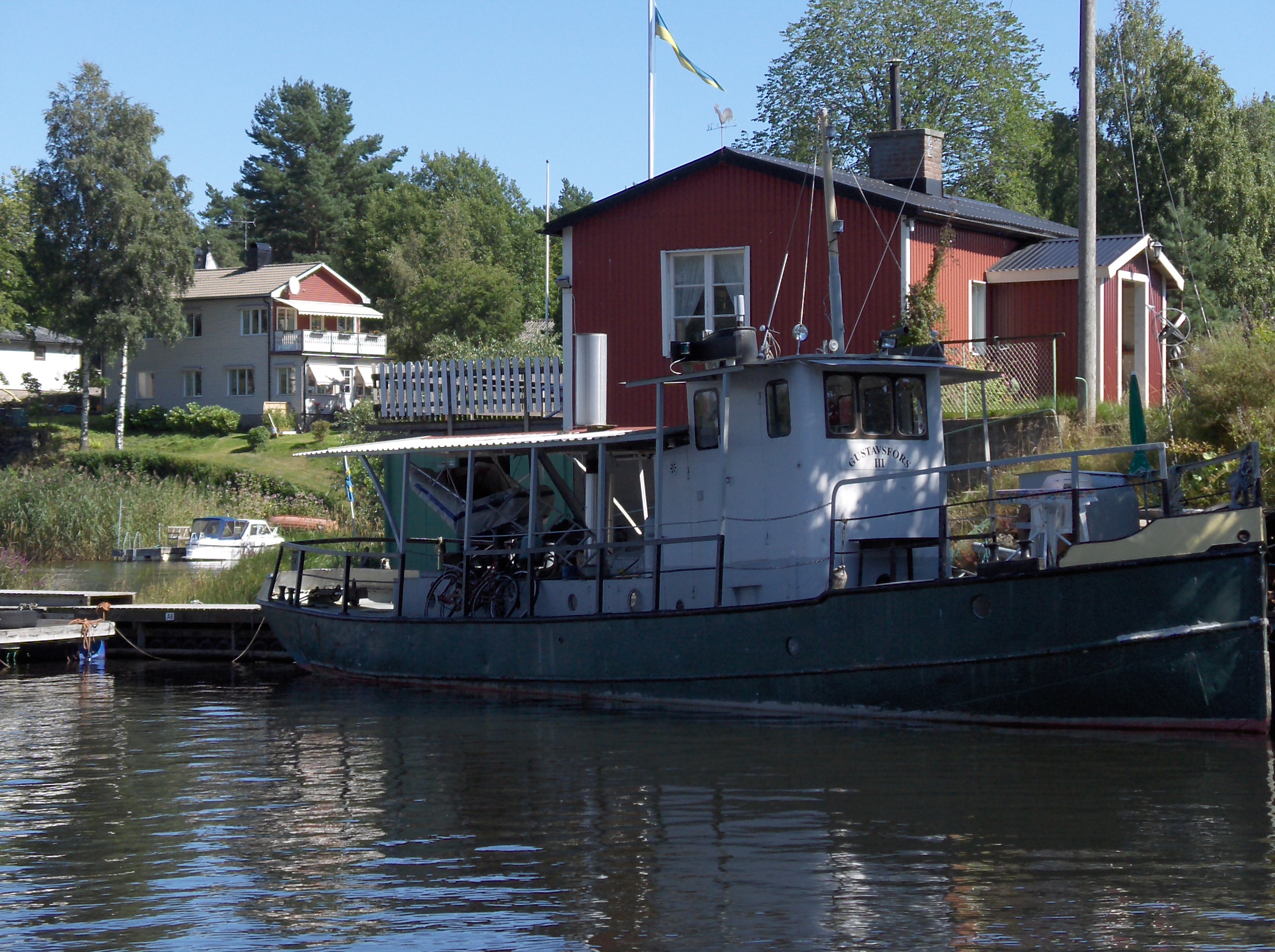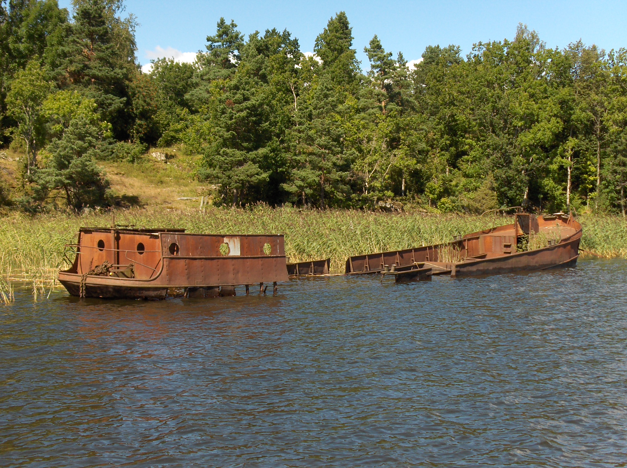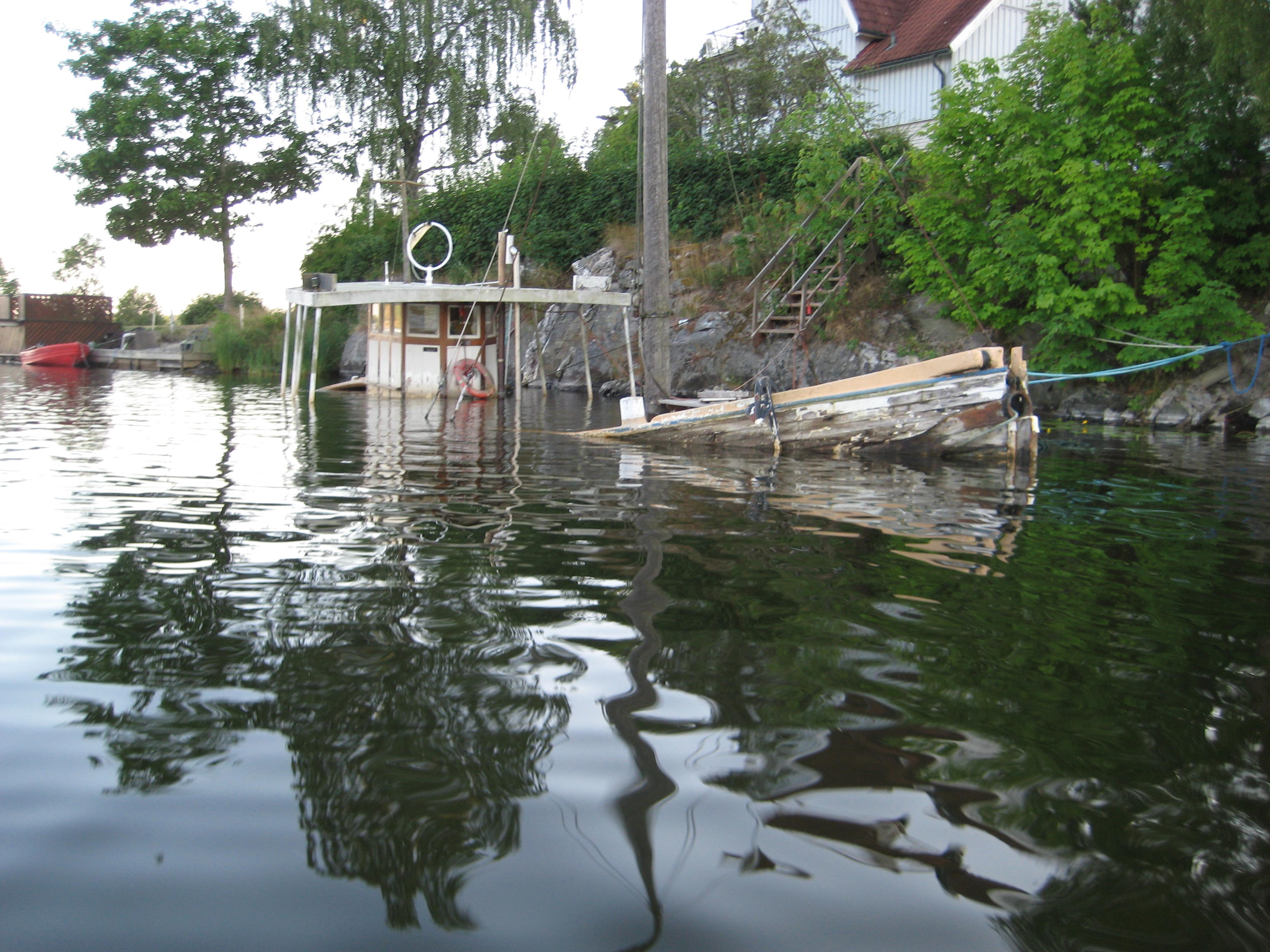 Spanten som sticker upp hitom min båt är resterna av 7032 VÄSTRAVIKEN ex JAL, ev Årnäs Stig Holms BILLINGSFORS III, lika fin som vanligt ! Den här ligger strax utanför slussen ,verkar vara ett avstannat projekt .... Vraket av ERIK SPARRE uppe i Svanefjorden , såg likadant ut som sist jag var där !!...för 19 år sedan! "Vrak" utanför Slussen i Snäcke ! med ledning av fälgen så gissar jag på en Engelsk Ford !