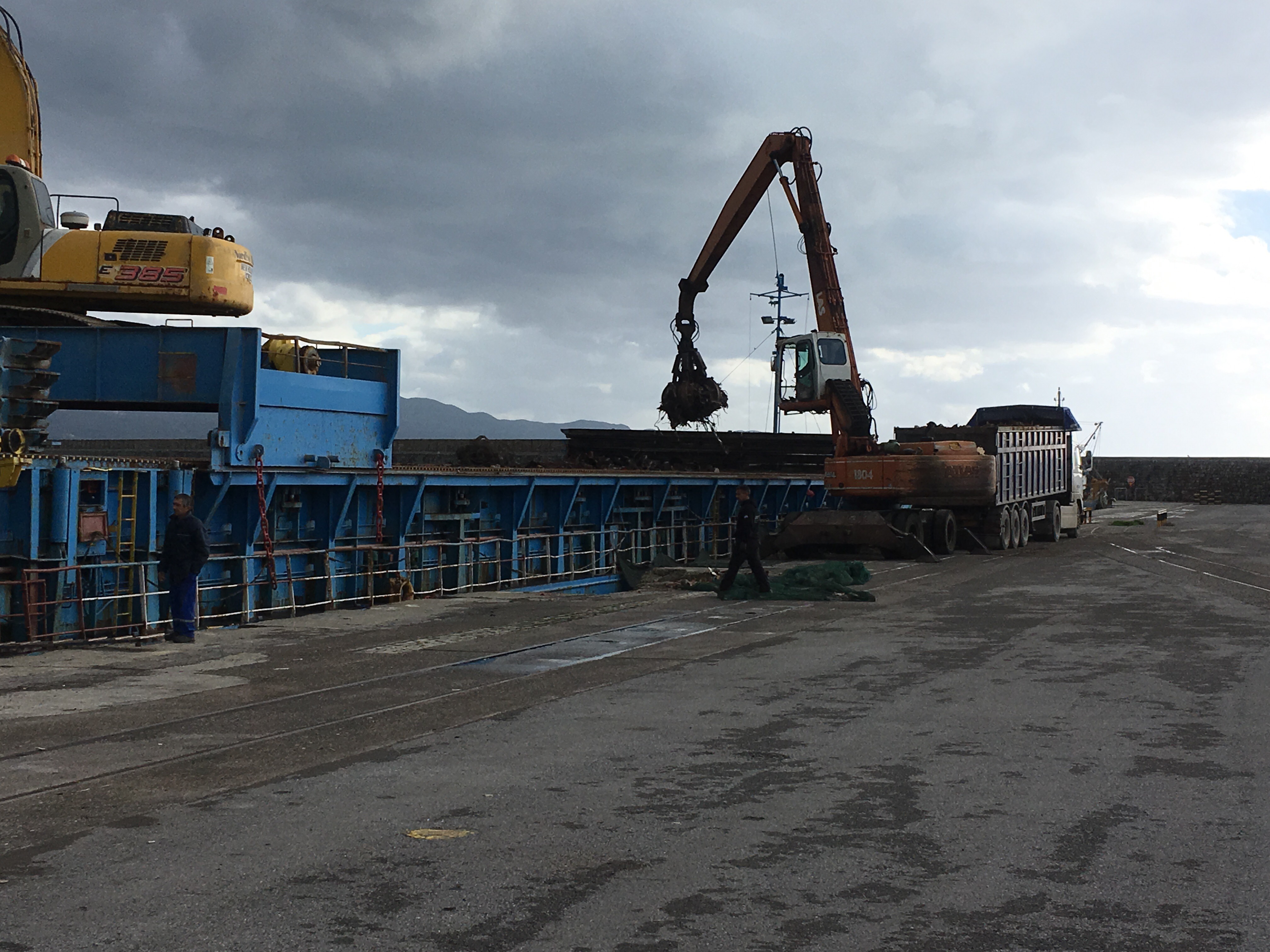 En skrotlastare ligger i hamnen och lastar sedan i början av veckan. Det är Anastasia imo 8417546 med grekisk flagg. Hon är byggd 1984 och lastar 1735 tdw. Hon kom från Naxos och verkar bli färdiglastad i morgon. Jag var inte själv i hamnen men fick en kontakt till att ta ett par bilder åt mig. Hon har väldigt liten överbyggnad.