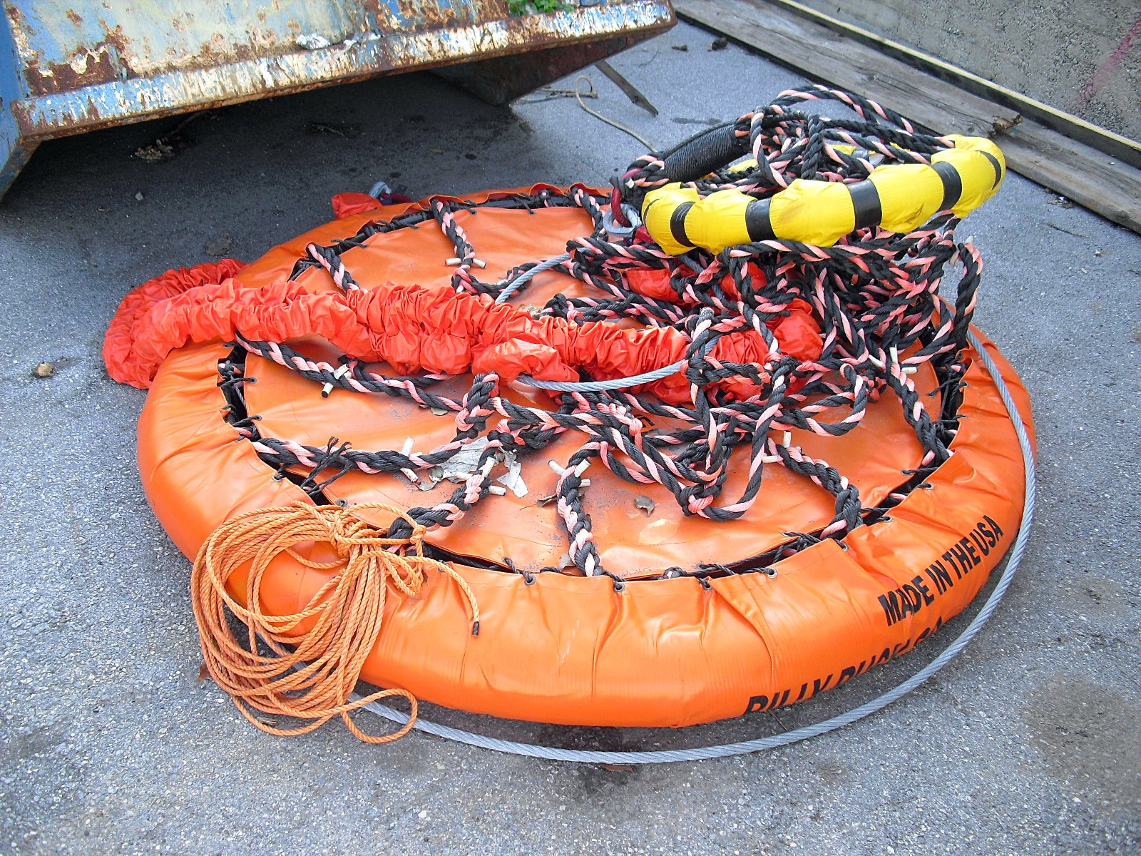 Här kommer bilderna. Den översta bilden tolkar jag som en livflotte. Man kan se en lika dan ombord. Eller kan det vara ett drivankare? Det finns vita behållare med livflotte akter om styrhytten.