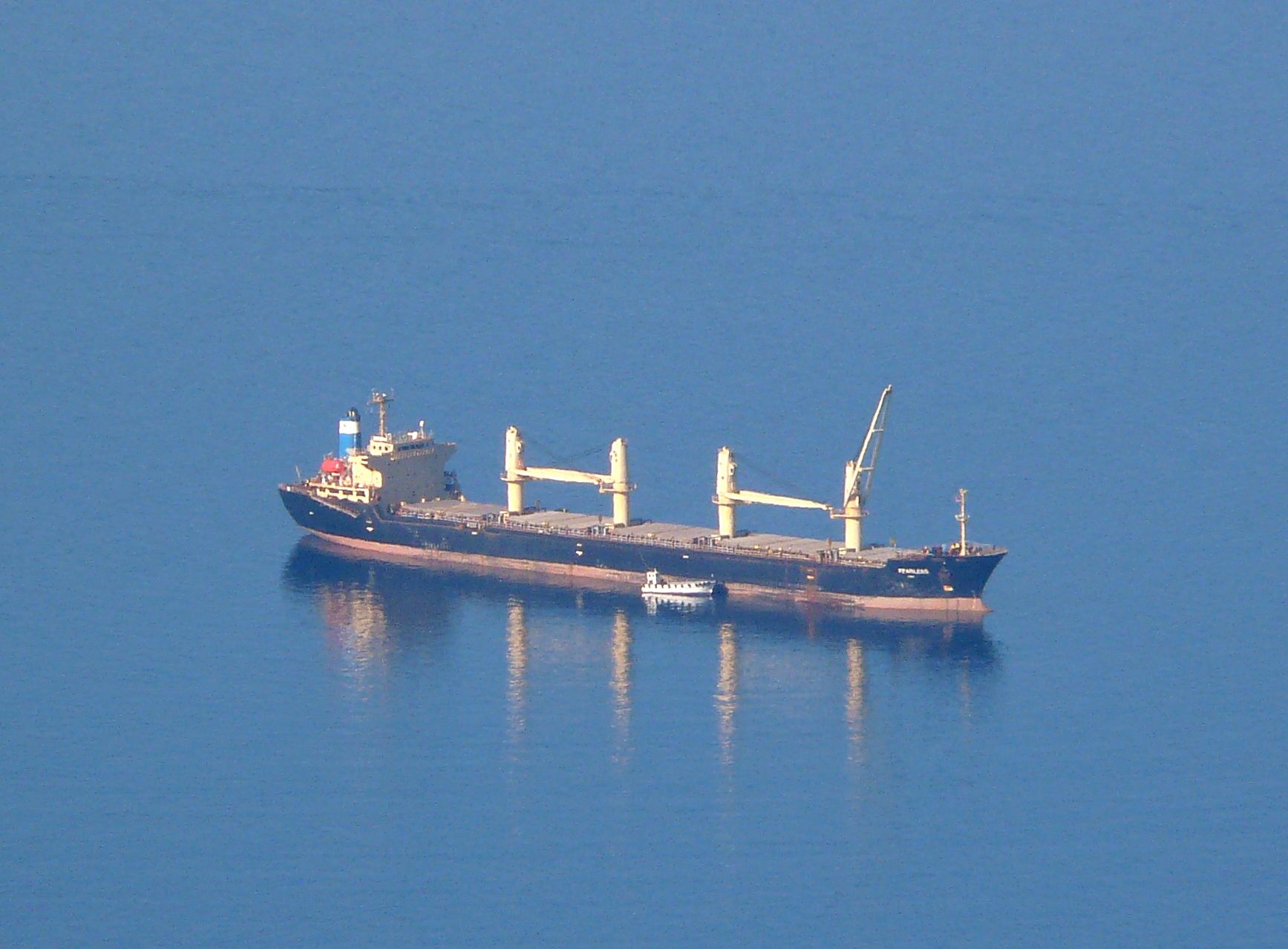 Man avslutade just en STS mellan Weisshorn Explorer och Ladybower och efter det ligger Ladybower 90 cm djupare och är på väg till Turkiet med lasten. Ramagas håller på att försöka komma långsides just nu. Det skiljer nu bara ett par hundra meter och Ledra Ena är på väg till hamnen igen efter fullgjort uppdrag med att flytta fendrarna. Jag har sett att det även ligger ett lager med slangar bland fendrarna på kajen. Förmodar att även de tillhandahålles mot betalning.