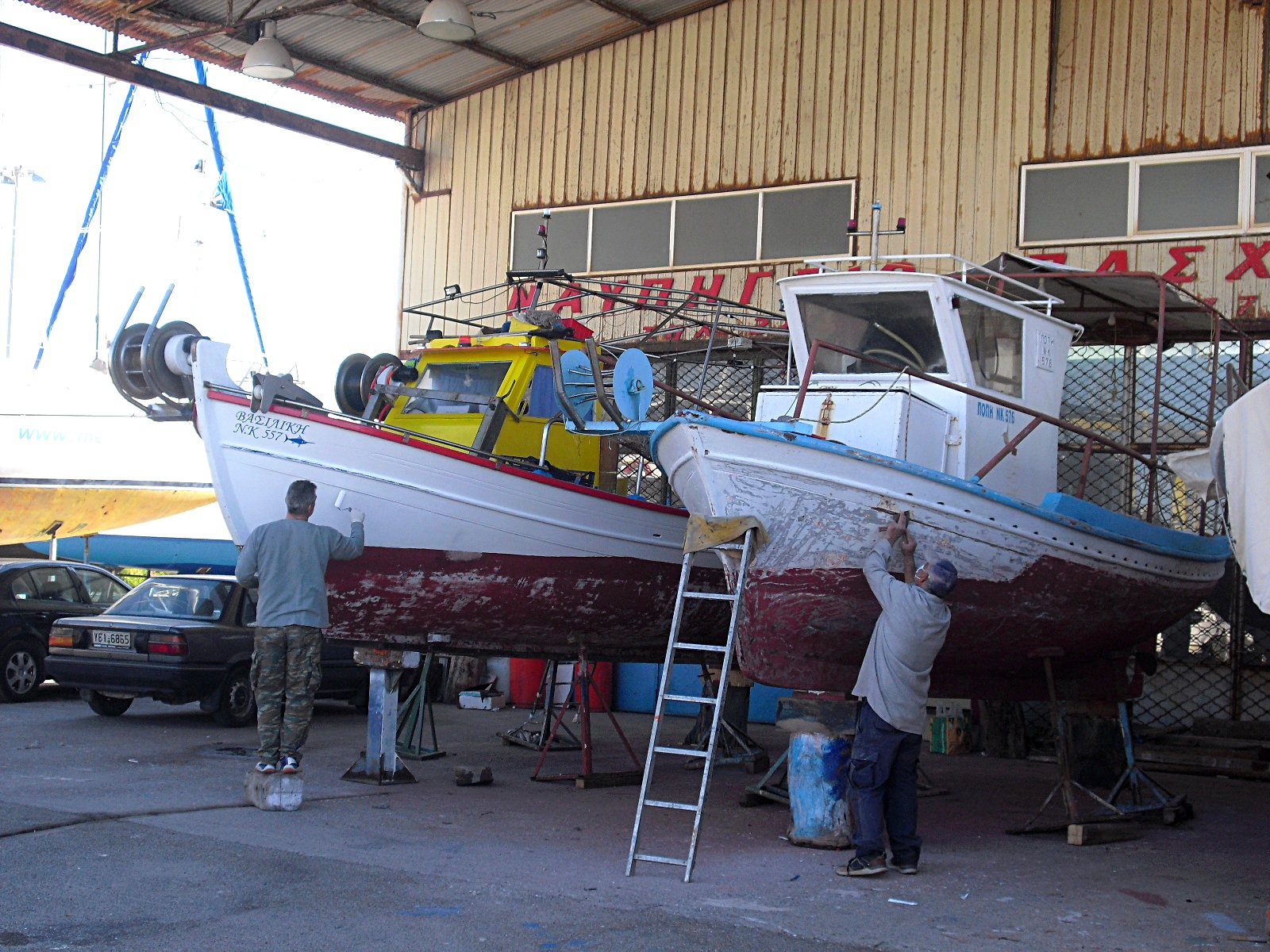 Jag var i hamnen idag och såg förödelsen efter den senaste stormen. Det blåste 8-9 beaufort rätt in i hamnen där omhändertagna smuggelbåtar ligger i avvaktan på auktion. Två seglare, den ena utanpå den andra, låg och högg mot kajen och varandra så att de fick stora skador. Bl. a bröts stormasten på den utanpåliggande ketchen. Bordläggningen bröts upp på flera ställen. När jag kom dit idag hade man lagt ut länsor runt de båda och en tankbil hade just sugit upp olja. Vid samtal med chauffören framgick att det inte var några stora mängder han sett. De här två båtarna har beslagtagits i samband med att de stoppats vid narkotikasmuggling strax söder om Peloponnesos för några år sedan. Chauffören sa fem år och jag gissar att det är däromkring. Han var också irriterad för att det tar så lång tid att få till stånd en auktion. Nu ligger de fortfarande här i hamnen och drar pengar och blir sämre för varje dag som går. De skulle bara behöva ligga några månader tyckte chauffören och jag håller med. Men det är rättsväsendets kvarnar som mal så långsamt misstänker jag och det är många som skall sätta stämplar på många olika papper innan det blir klart och rättssäkert. De som hyr ut länsor och bevakar förtöjningar är säkert glada för säkra inkomster garanterade av staten.