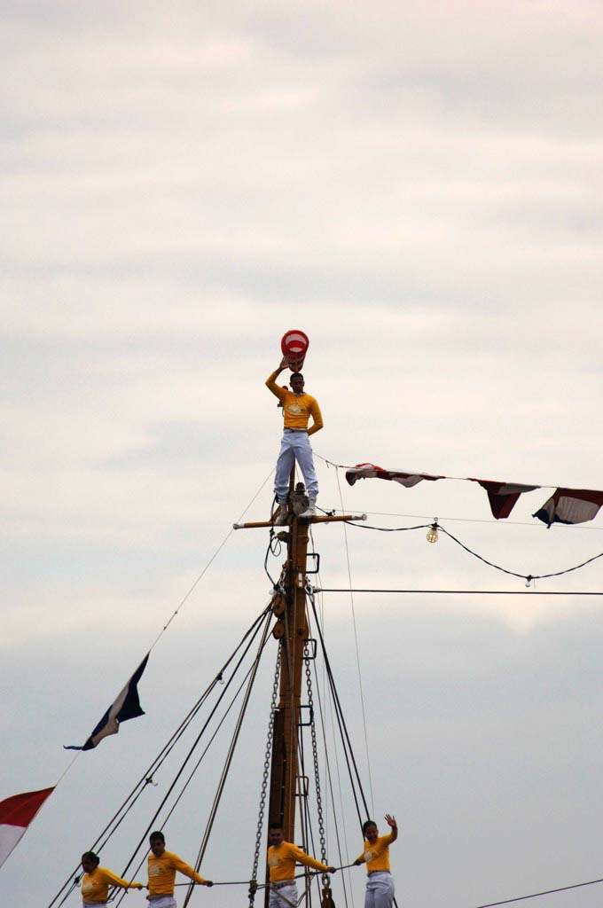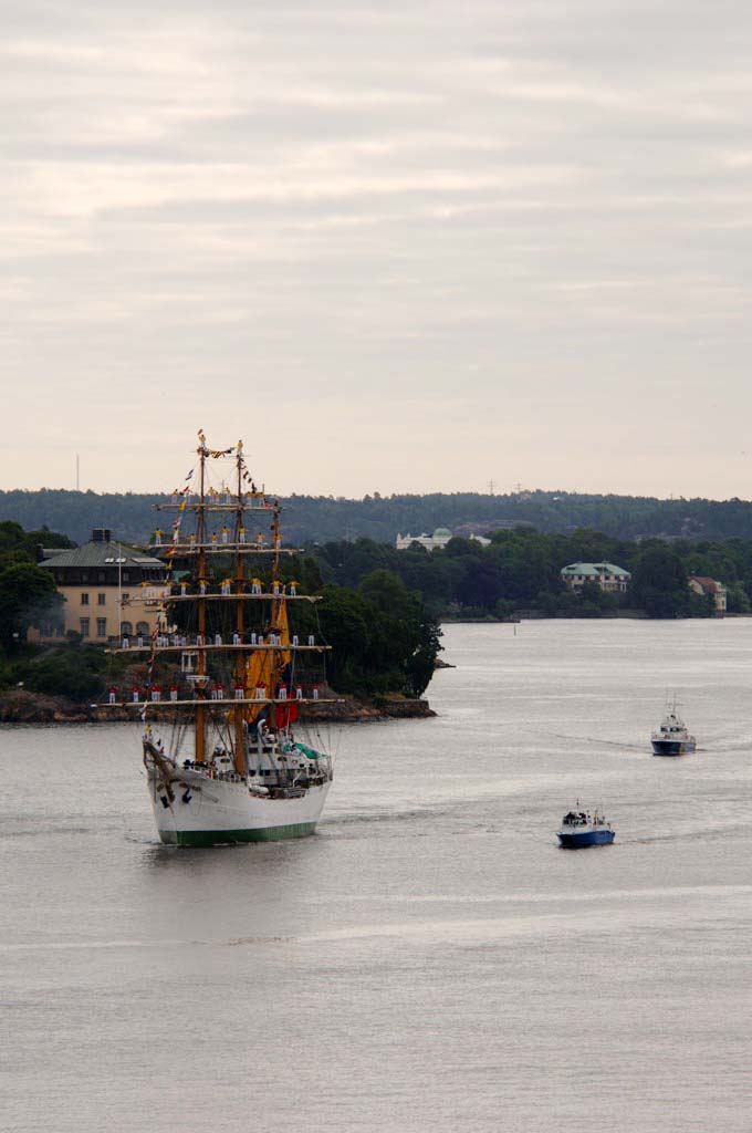 Fullt pådrag var det när det Columbianska segelfartyget "Gloria" anlöpte stadsgården imorse. Av en eller annan anledning krävdes både polishelikopter, kustbevakning, polisbåtar samt förstärkning på kaj. Färggrant var det i alla fall.