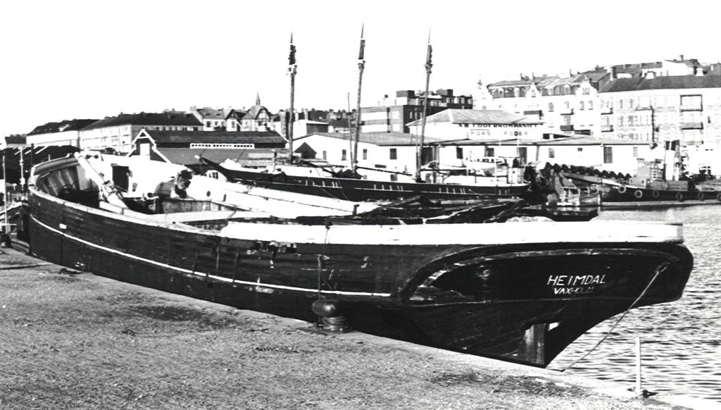 Heimdal 1956 i Helsingborg och 1961 i Helsingborg efter branden. I bakgrunden Marcia, regnr 6712.