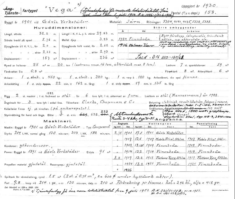 Det tog sin tid innan det var någon som kunde knäcka denna gåta. Stort tack för hjälpen! Bara en fråga, ska det verkligen vara "1800 kallt" som byggår? Borde väl vara närmre 1900 kallt om Vega inte byggdes som segelfartyg från början förståss...