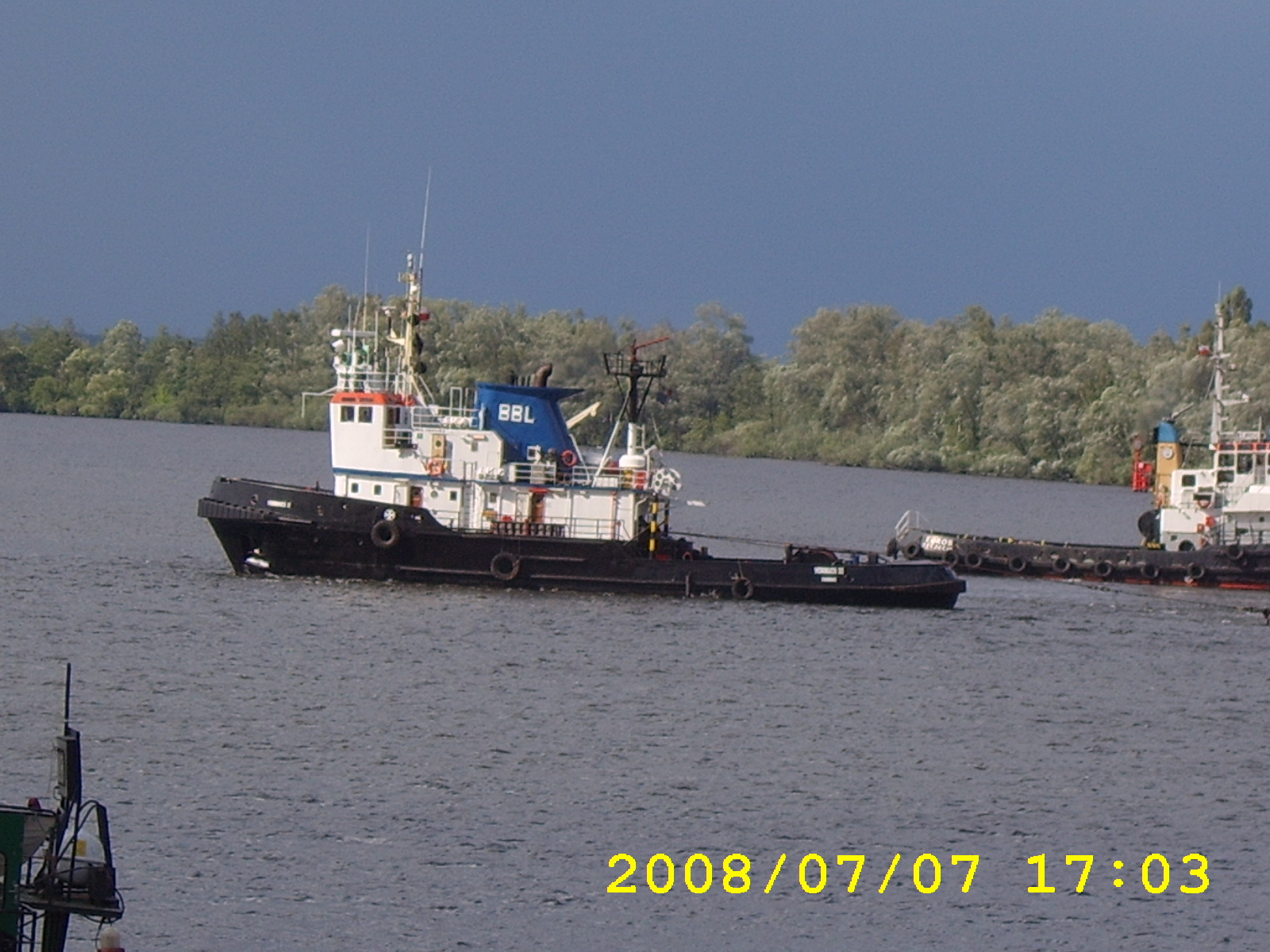 Vad är det för tross som man har hängt längs fartygssidan på Skogoy under bogseringen ?