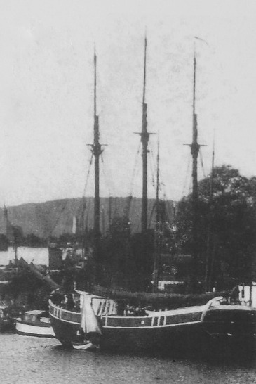 Bilden föreställer den tremastade skonaren Argus med Skärhamn som hemort från 1929 till förlisningen 1930. Bilden kommer från bokverket Tjörns båtar.