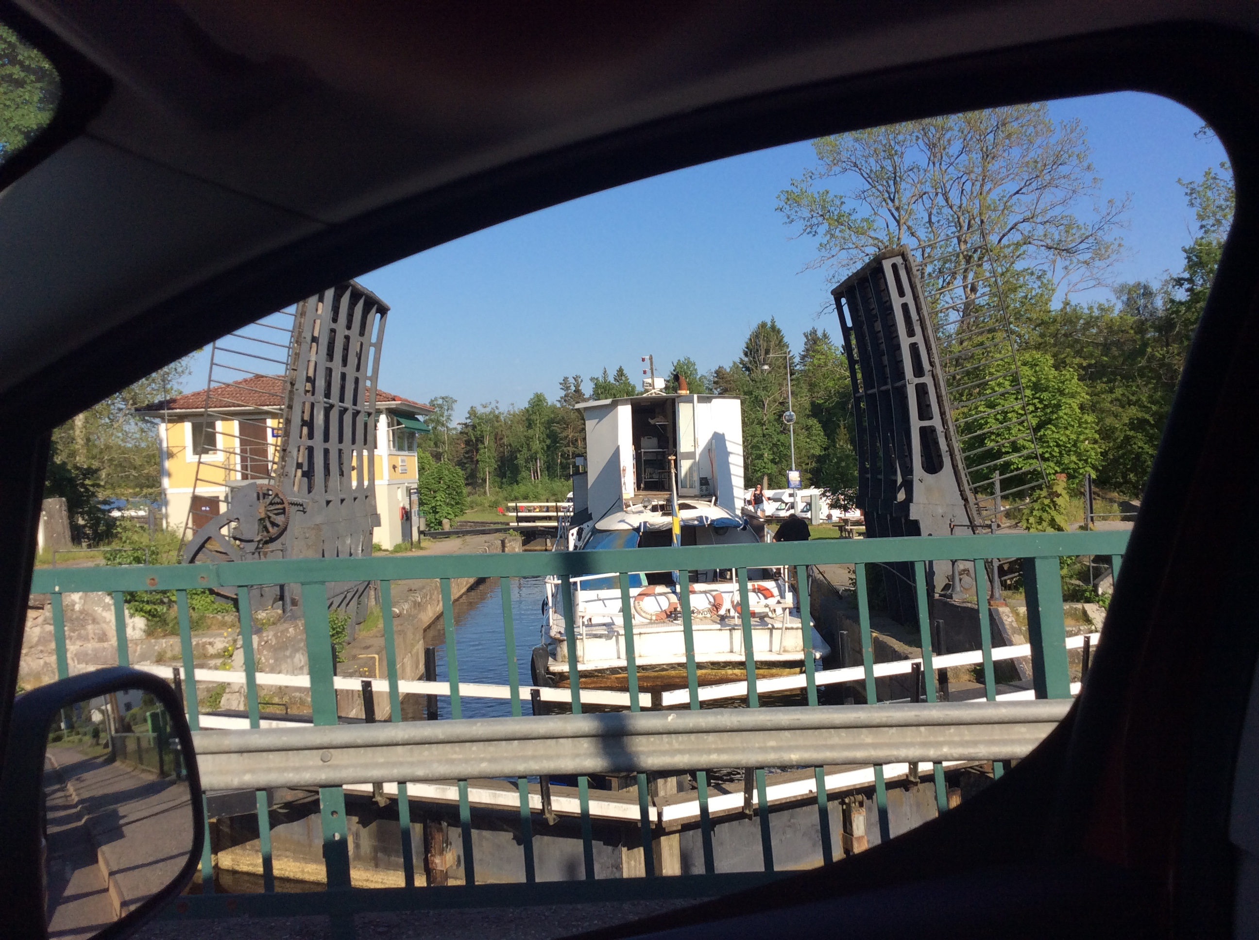 När vi kom in till Sjötorp igår så låg den kvar men nu i bassängen uppanför sjöslussen ,