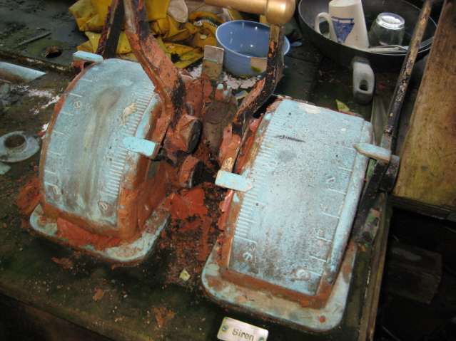 Undertecknad blev engagerad när upphuggningen var påbörjad och förskeppet redan var avkapat. några otroligt fräcka jävlar !!! Var en helg var ombord och lade stort arbete i att stjäla ventiler och reglage !! och även andra föremål !detta skedde när arbetet påbörjats och förskeppet var bortsågat ,visserligen hade ägaren inte brytt sig om att plocka bort något !! MEN "företaget" som utförde upphuggningen hade definitift inte !! tänkt låta NÅGOT följa med till skrot ! nedan följer bilder på en del av det som stulits !! så om någon vet-sett dessa föremål så är de alltså stöldgods och skall återlämnas ! spår- vittnen finns faktist ! men det är polisens sak att ta tag i !